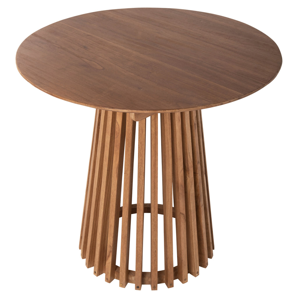 FRANTZ е кръгла трапезна маса, със задоволителни размери в естествен дървесен цвят. Масата се поддържа от дървена конструкция в центъра с много греди в конична подредба, които са свързани заедно в долната част на вътрешната страна с пръстен. Тази маса ще надгради естетически вашата трапезария, като същевременно може да се съчетае с много различни стилове и цветове в заобикалящото пространство, както и различни стилове столове.