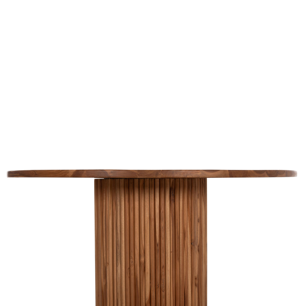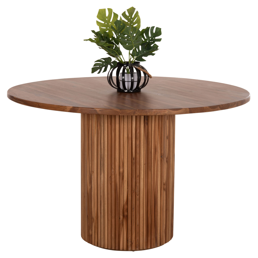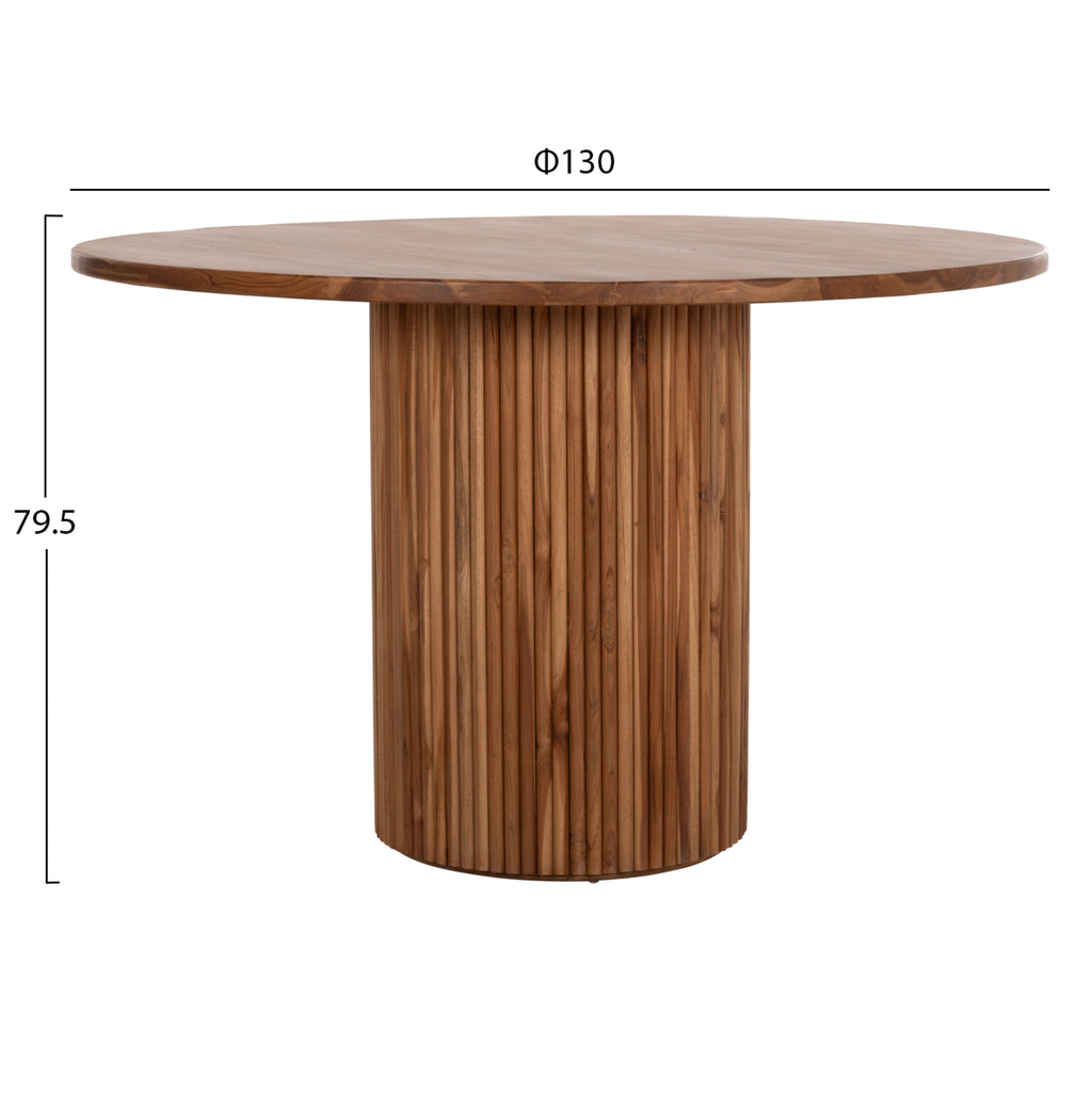 Кръглата трапезарна маса RODER е изработена от качествена дървесина в ЕСТЕСТВЕНИЯ ѝ цвят, а размерите ѝ са задоволителни и достатъчни за поне 4 души. Тя е поставена върху основа/колона от същата дървесина и е идеална както за дома, така и за професионални пространства! РАЗМЕРИ: Φ130x79,5H см. Дебелина на повърхността: 3 см. Основа: Φ50 см. МАТЕРИАЛИ ЗА СТРОИТЕЛСТВО: Масата е изработена от висококачествена ТИКОВА дървесина. ТИКОВАТА дървесина е най-популярният вид твърда дървесина. Тя е изключително тежка, много издръжлива, устойчива на атмосферни влияния, деформация и не се разпада. Използва се за различни вътрешни и външни конструкции. ПОДДРЪЖКА: Всичко, което е необходимо, е почистване от прах и при необходимост с влажна кърпа. *Доставя се несглобена във фабрична опаковка. ** Цветопредаването на продукта може леко да се различава от фотографското му представяне на вашия екран.