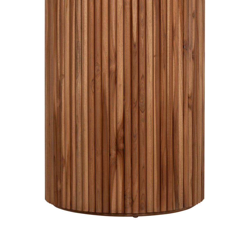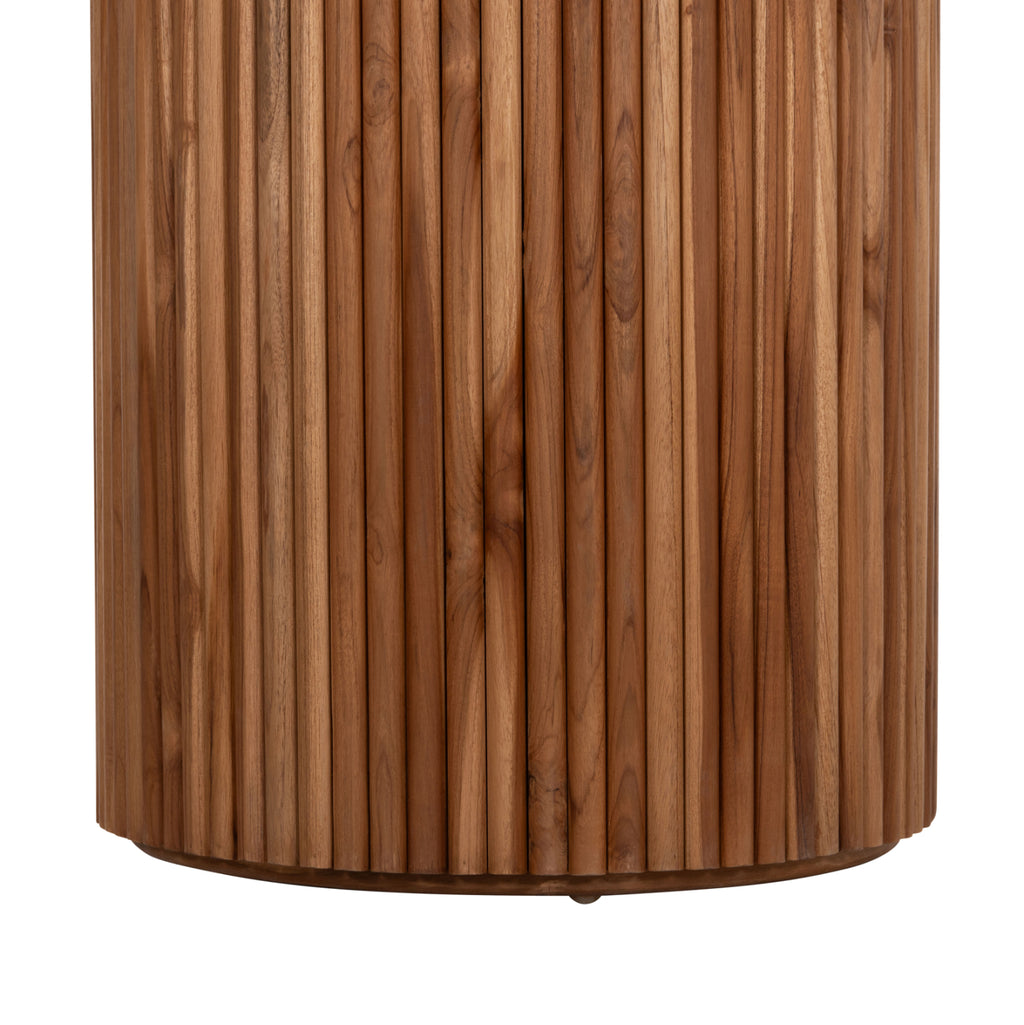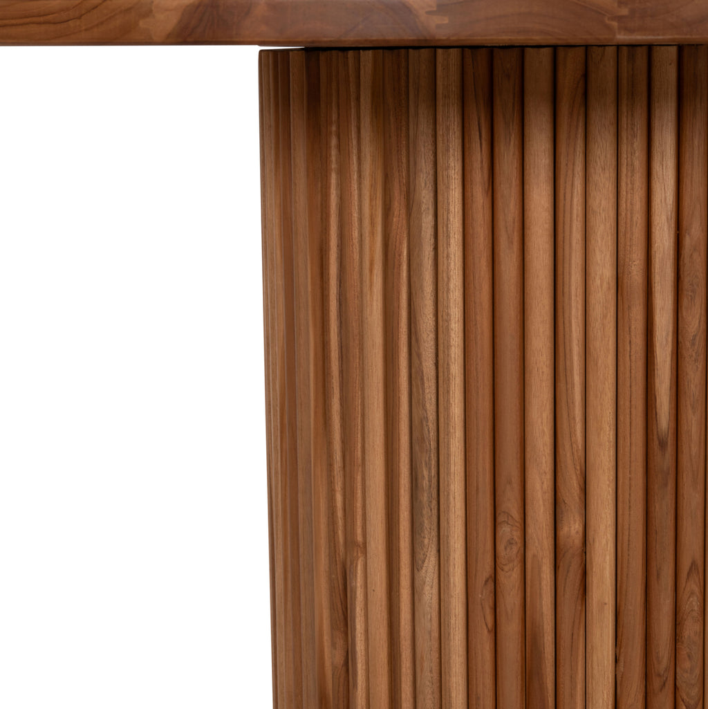 Кръглата трапезарна маса RODER е изработена от качествена дървесина в ЕСТЕСТВЕНИЯ ѝ цвят, а размерите ѝ са задоволителни и достатъчни за поне 4 души. Тя е поставена върху основа/колона от същата дървесина и е идеална както за дома, така и за професионални пространства! РАЗМЕРИ: Φ130x79,5H см. Дебелина на повърхността: 3 см. Основа: Φ50 см. МАТЕРИАЛИ ЗА СТРОИТЕЛСТВО: Масата е изработена от висококачествена ТИКОВА дървесина. ТИКОВАТА дървесина е най-популярният вид твърда дървесина. Тя е изключително тежка, много издръжлива, устойчива на атмосферни влияния, деформация и не се разпада. Използва се за различни вътрешни и външни конструкции. ПОДДРЪЖКА: Всичко, което е необходимо, е почистване от прах и при необходимост с влажна кърпа. *Доставя се несглобена във фабрична опаковка. ** Цветопредаването на продукта може леко да се различава от фотографското му представяне на вашия екран.