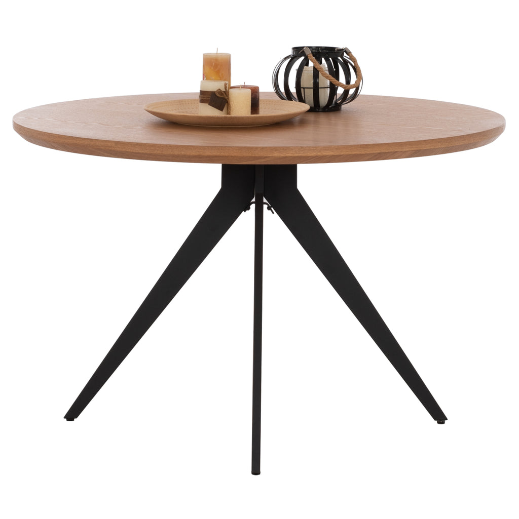КГ9307.01 е красива кръгла трапезна маса с MDF плот с дъбов фурнир в цвят МЕДЕН ДЪБ и стил рустик. Тази повърхност е "насечена" и лежи върху черна метална основа, от която започват 4-те крака във формата на странично L. Масите Ротонда са особено практични и красиви, защото нямат плотове и "водачи", нито ъгли или крака в ъглите, които често създават неудобни ситуации. Това е внушителна маса в големи размери и с красива двуцветна цветова схема, така че може да се впише естетически в почти всяко подобно пространство.