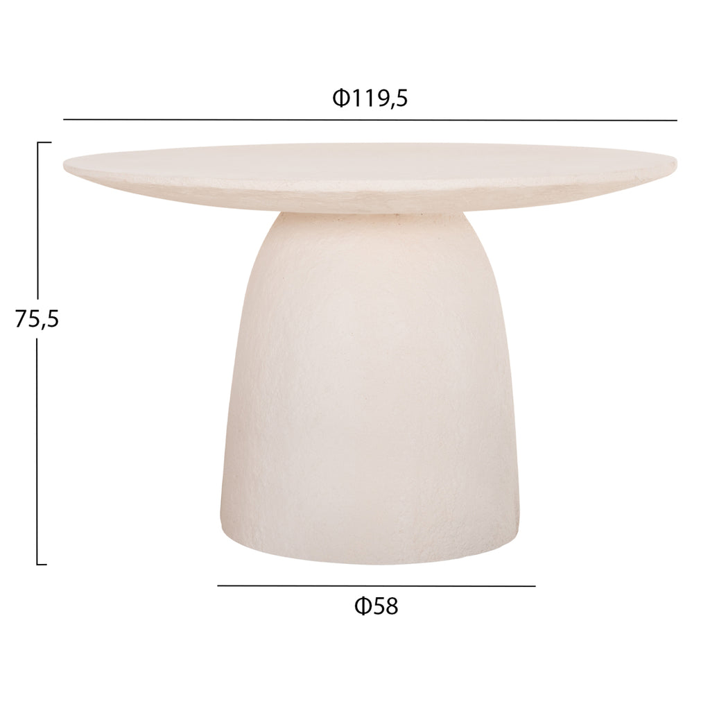 Ръчно изработената кръгла маса за хранене SEPPO доминира във всяко пространство с внушителното си присъствие. Изработена е изцяло от Фиброцимент в БЯЛ цвят и е подходяща както за дома, така и за професионални помещения, като хотели, AirBnB и др., със съответната естетика. **ВЪТРЕШНО ИЛИ ВЪНШНО УПОТРЕБА С ОГРАДА** РАЗМЕРИ: Φ119.5x75.5H cm Основа: Φ58cm СТРОИТЕЛНИ МАТЕРИАЛИ: Фиброциментът е композитен строителен материал, изработен от цимент, подсилен с целулозни влакна. Известен е със своята издръжливост, устойчивост на гниене, вода и насекоми, което го прави избор с ниска поддръжка. Предимства: • Изисква минимална поддръжка и се почиства лесно. • Не е запалим. • Устойчивост на гниене и вредители. ПОДДРЪЖКА: Едно почистване с прах обикновено е достатъчно, но избягвайте използването на химически почистващи препарати. ** Цветопредаването на продукта може леко да се различава от неговото фотографско представяне на вашия екран.