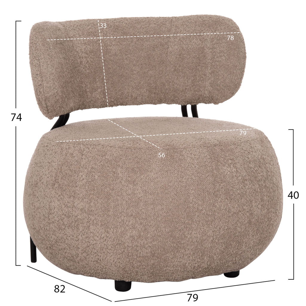 Фотьойл KARSEN е модерен и стилен фотьойл, който ще остави своя отпечатък във всяка всекидневна, в която бъде поставен. Полукръглата му форма с кръгла и много ниска черна основа, съчетана с ниската и независима от седалката облегалка, предлага опора за тялото с комфорт и стил. Цветът DARK BEIGE е атрактивен и може да се комбинира с множество други цветове в декорацията на хола. РАЗМЕРИ: 79x82x74H см. Размери на седалката: 79x56 см. Размери на облегалката: 78x33 см. Височина на седалката: 40 см. МАТЕРИАЛИ ЗА ИЗРАБОТКА: "Пълнежите" както на облегалката, така и на седалката са изработени от средно твърди дунапренени материали, които предлагат голям комфорт и по-добра опора на тялото. Тапицерията на фотьойла е изработена изцяло от висококачествен плат BOUQUET. Букле е всяка тъкан, която има възел-къдрава тъкан. Изработена е от почти всички суровини (въпреки че обикновено е синтетична) със специални възлови нишки или силно усукани прежди, така че да има къдрава повърхност. Не се мачка и може да бъде едноцветен, меланж, кариран или туид. ПОДДРЪЖКА: Можете да почистите плата букле с прахосмукачка, а в случай на петна, използвайте леко влажна кърпа. ПРЕДИМСТВА: •Топло усещане с плата букле •Модерен дизайн Продуктът се доставя във фабрична опаковка ** Цветопредаването на продукта може леко да се различава от фотографското му представяне на вашия екран.