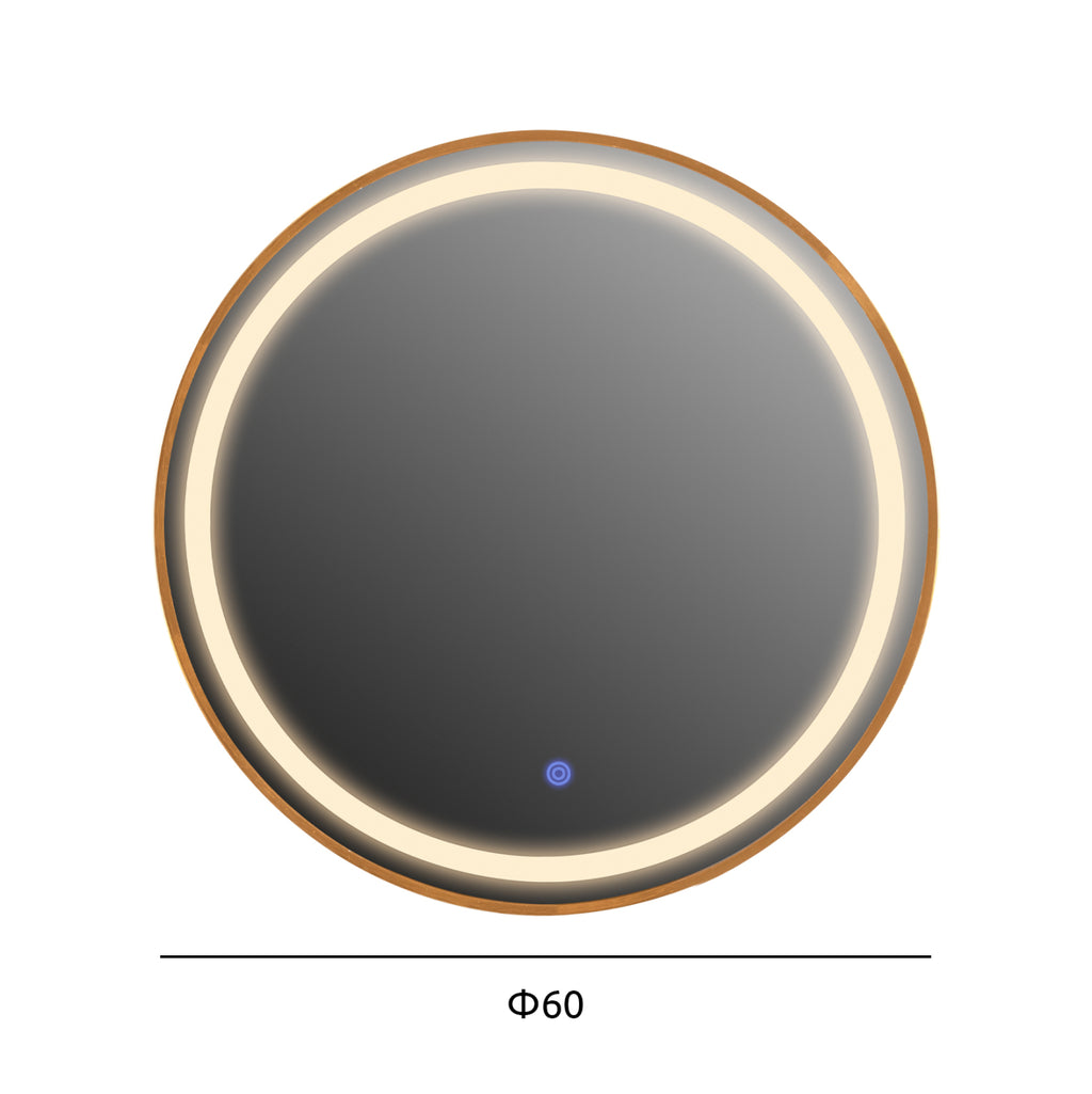 КГ9580.30 е кръгло стенно огледало със ЗЛАТНА рамка, елегантно и с много задоволителни размери. Това, което го отличава от обикновените огледала обаче е, че има LED осветление, интегрирано в кръгова подредба, следваща „линията“ на рамката. Осветлението се активира чрез сензорен ключ (в синьо) отпред и отдолу на огледалото и произвежда 3 различни цвята светлина. Топло (жълтеникаво), светло синьо и естествено бяло, активирани чрез натискане на същия сензорен бутон. Полезен "инструмент" предимно за банята, но и за всяко друго помещение имате нужда от огледало с осветление! РАЗМЕРИ: Φ60x3 (разстояние от стена) см. КОНСТРУКТИВЕН МАТЕРИАЛ: Рамката на огледалото е алуминиева, което го прави леко и издръжливо.