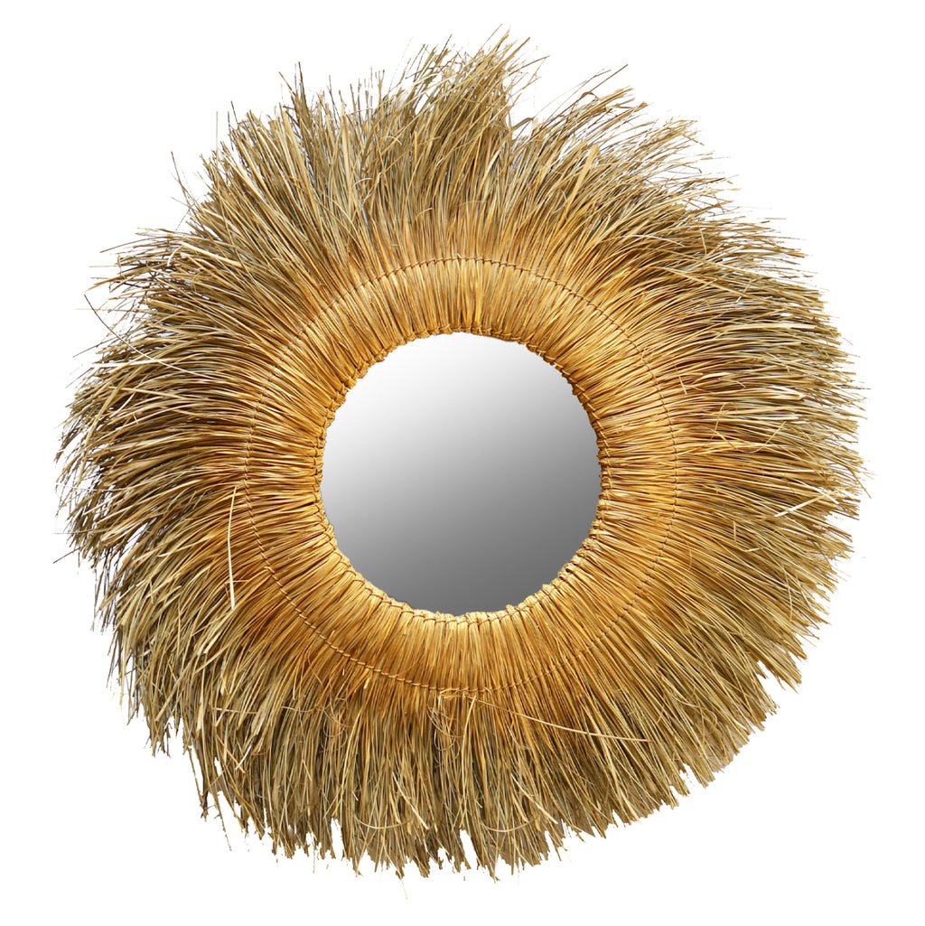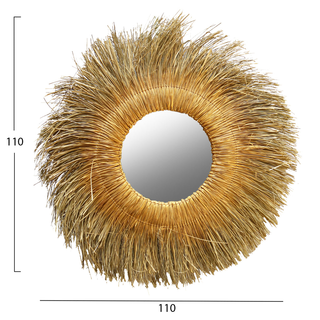 Кръгло стенно огледало с панданска трева, натурално златист цвят, 110x5x110 см