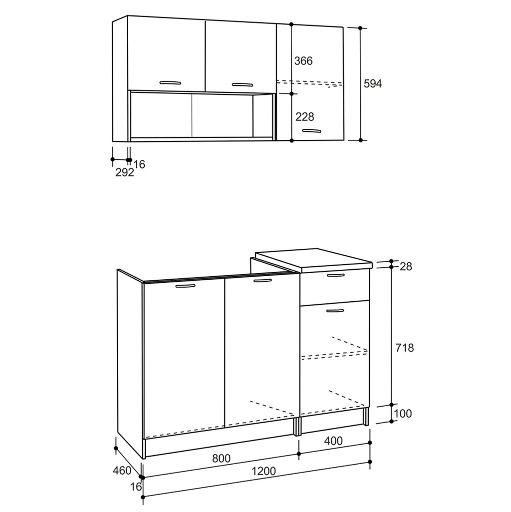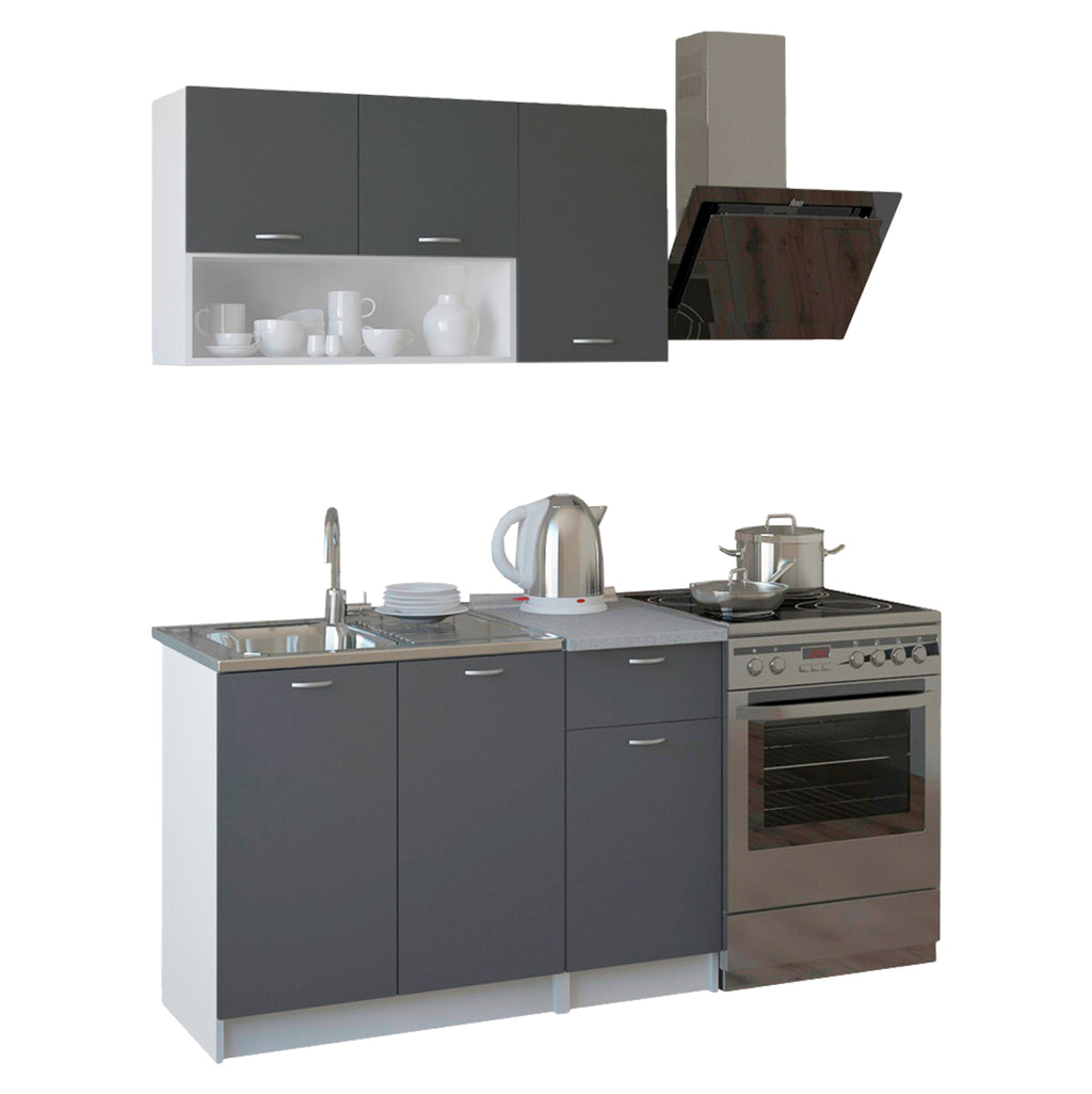 Σύνθεση Κουζίνας, σε απόχρωση γκρι - λευκό 120x46-29,2 εκ. Οι έτοιμες συνθέσεις κουζίνας καλύπτουν τις βασικές ανάγκες του χώρου σας, κυρίως αν χρειάζεστε μια μικρή κουζίνα με όλο τον απαραίτητο αποθηκευτικό χώρο. Αν αναζητάτε μια οικονομική λύση, σε μικρή, ευθεία κουζίνα, κατασκευασμένη από εξαιρετικής ποιότητας μελαμίνη, πάχους 16mm, με ανοιχτούς και κλειστούς αποθηκευτικούς χώρους, ντουλάπια, συρτάρι, στα οποία μπορείτε να αποθηκεύσετε όλα τα είδη σερβιρίσματος, μαχαιροπήρουνα και τα σκεύη κουζίνας, τότε έχετε βρει το κατάλληλο προϊόν. Το προϊόν αποτελεί μια ιδανική πρόταση για ενοικιαζόμενα δωμάτια, ξενοδοχεία, γραφεία, επαγγελματικούς χώρους και φοιτητικές ή εξοχικές κατοικίες. Γενικές διαστάσεις επιτοίχιας μονάδας: 120x29,2x59,4Υ εκ. Ύψος ανοιχτών αποθηκευτικών χώρων: 22,8Υ εκ. Ύψος ντουλαπιών: 36,6-59,4Υ εκ. Γενικές διαστάσεις επιδαπέδιας μονάδας: 120x46x84,6Υ εκ. Διαστάσεις διπλού ντουλαπιού: 80x46x71,8Υ εκ. Διαστάσεις μονού ντουλαπιού και συρταριέρας: 40x46x71,8Υ εκ. Ύψος μπάζας: 10 εκ. Ο πάγκος του μονού ντουλαπιού συμπεριλαμβάνεται. Διαστάσεις πάγκου: 40x60x2,8 εκ. Πάχος μελαμίνης: 16 mm. Ευρωπαϊκής προέλευσης και κατασκευής * Δεν συμπεριλαμβάνονται οι ηλεκτρικές συσκευές, ο νεροχύτης και τα σκεύη κουζίνας. * Προτείνεται νεροχύτης επικαθήμενος 80x60 εκ. * Τα ντουλάπια έχουν την δυνατότητα να προσαρμοστούν σύμφωνα με τις ανάγκες του κάθε πελάτη.