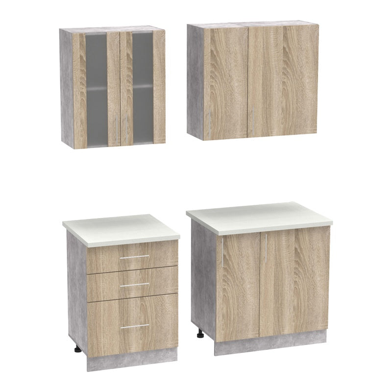 - Това оформление позволява организирането на кухненските прибори и храната, осигурявайки спретнато и функционално пространство.