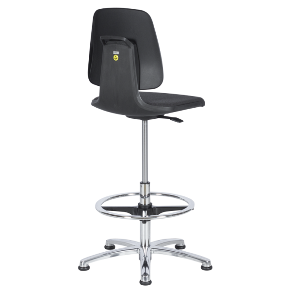 Лабораторен стол BIMOS Labsit 9121 е ергономично и универсално решение за лаборатории, фармацевтични производства и всички хигиенични среди. Гладките повърхности и минималните фуги улесняват почистването и осигуряват висока устойчивост на дезинфектанти. Гъвкавата облегалка с 3D-Flex функция следва естествените движения на тялото, а предният ръб на седалката се адаптира при работа в наклонена позиция, за да подпомогне кръвообращението. Тапицираната седалка от формована полиуретанова пяна е устойчива на химикали, остри предмети, кръв и урина, с висока износоустойчивост и огнеустойчиви свойства. Височината на седалката се регулира плавно в диапазон 520–770 мм, а високата хромирана поставка за крака осигурява стабилна опора. Столът е оборудван с износоустойчиви плъзгачи, осигуряващи стабилност и безопасност при работа. Задната дръжка улеснява преместването. Възможност за избор на фиксирани подлакътници и Lab-clip за персонализиране. Labsit 9121 е лек, стабилен и компактен стол, който съчетава модерен дизайн с отлична ергономия и надеждна хигиена.