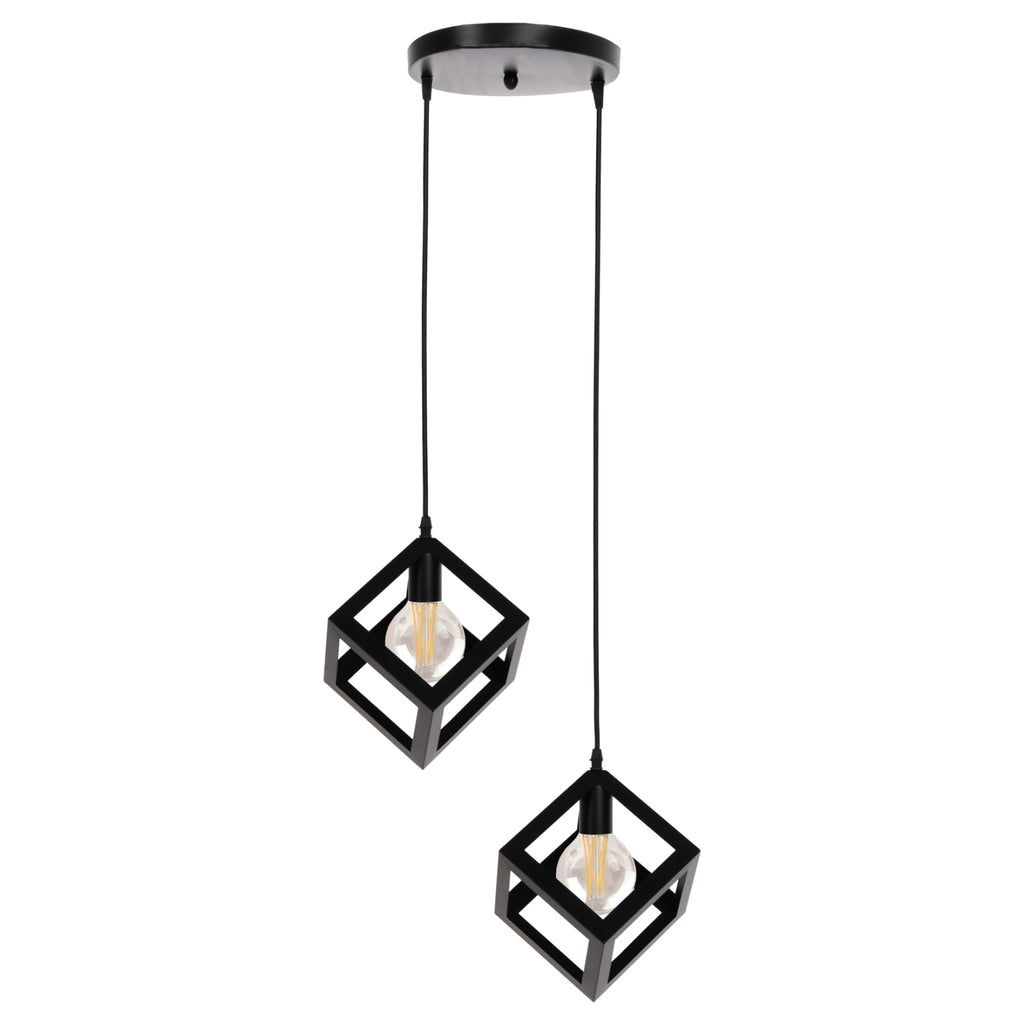 Оставете светлината да се разпространи в пространството с оригинална и елегантна висулка за таван с 2 лампи, завършвайки вашата декорация. Двата KYBOI на различни височини са олицетворение на модерния дизайн. ТЕХНИЧЕСКИ ХАРАКТЕРИСТИКИ: Цокъл за крушка: Е27 Цокъл за обикновена крушка Тип на крушката: Препоръчва се 20w LED Размери на основата: Φ18см. Размери на шапката: 16x16x26H см. Обща височина: 130см. МАТЕРИАЛ НА ИЗРАБОТКА: Цялата лампа е изработена от метал, както и кръглата основа за окачване на тавана. ПОДДРЪЖКА: Най-важното за тази конкретна лампа е редовното й почистване от прах. Ако имате време, разбира се, използвайте влажна кърпа и я направете да изглежда като нова. *Лампи не са включени в цената