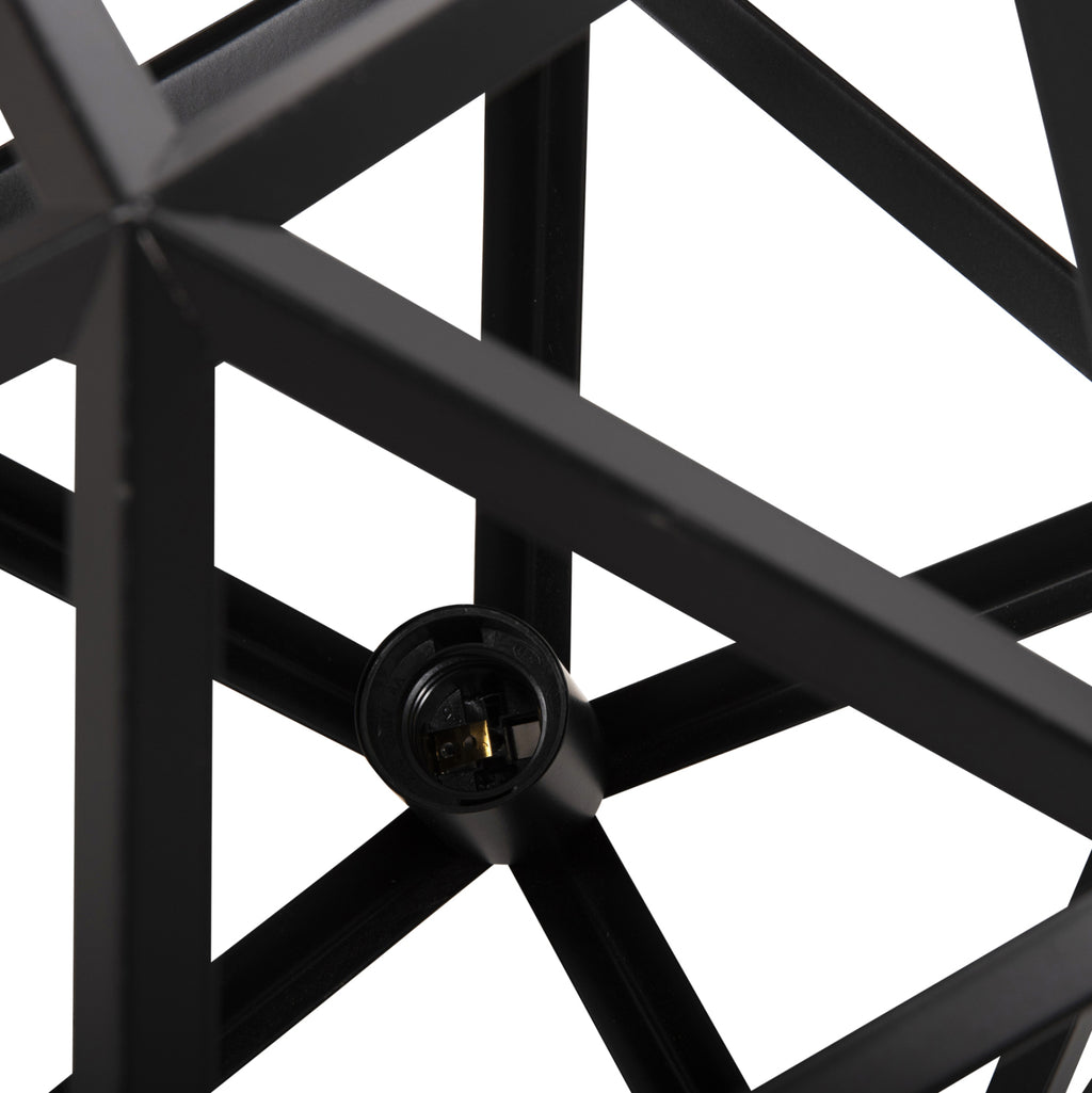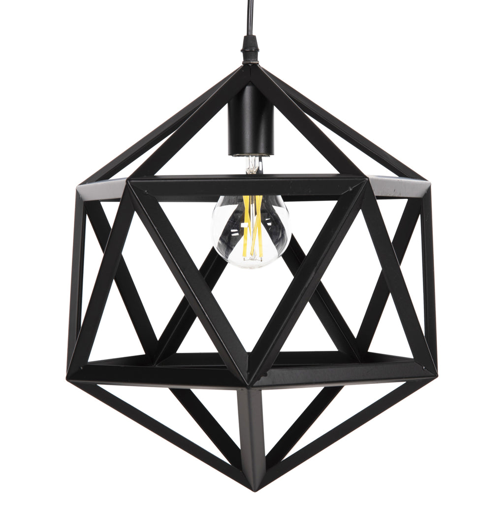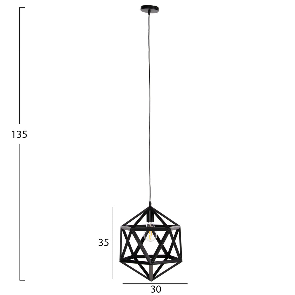Открийте тази красива висяща таванна лампа от нашата нова гама, която допълва вашата декорация. Дизайнът на черната метална многоъгълна клетка е олицетворение на модерния дизайн. ТЕХНИЧЕСКИ ХАРАКТЕРИСТИКИ: Цокъл на крушка: E27 Цокъл с обикновена крушка Тип на крушката: Препоръчително е да се използва LED 20w Размери: 30x30x135Y cm. Височина на шапката: 35см. CE сертифициран МАТЕРИАЛ НА КОНСТРУКЦИЯТА: Цялата монолайт е изработена от метал, в резултат на което нейната здравина и издръжливост са неоспорими. ПОДДРЪЖКА: Най-важното за тази конкретна лампа е редовното й почистване от прах. Ако имате време, разбира се, използвайте влажна кърпа и я направете да изглежда като нова. ПРЕДИМСТВА: Това е модерна единична лампа, при която дифузията на светлината се извършва във всички посоки благодарение на мрежестия дизайн и това я прави идеална за различни пространства, като дневни, всекидневни, кухни, ако това е вашият дом и с голяма лекота може да се побере и в професионални помещения като ресторанти, кафенета, хотели и др. *Крушките не са включени в цената ** Цветопредаването на продукта може леко да се различава от това на продукта фотографско представяне на вашия екран.