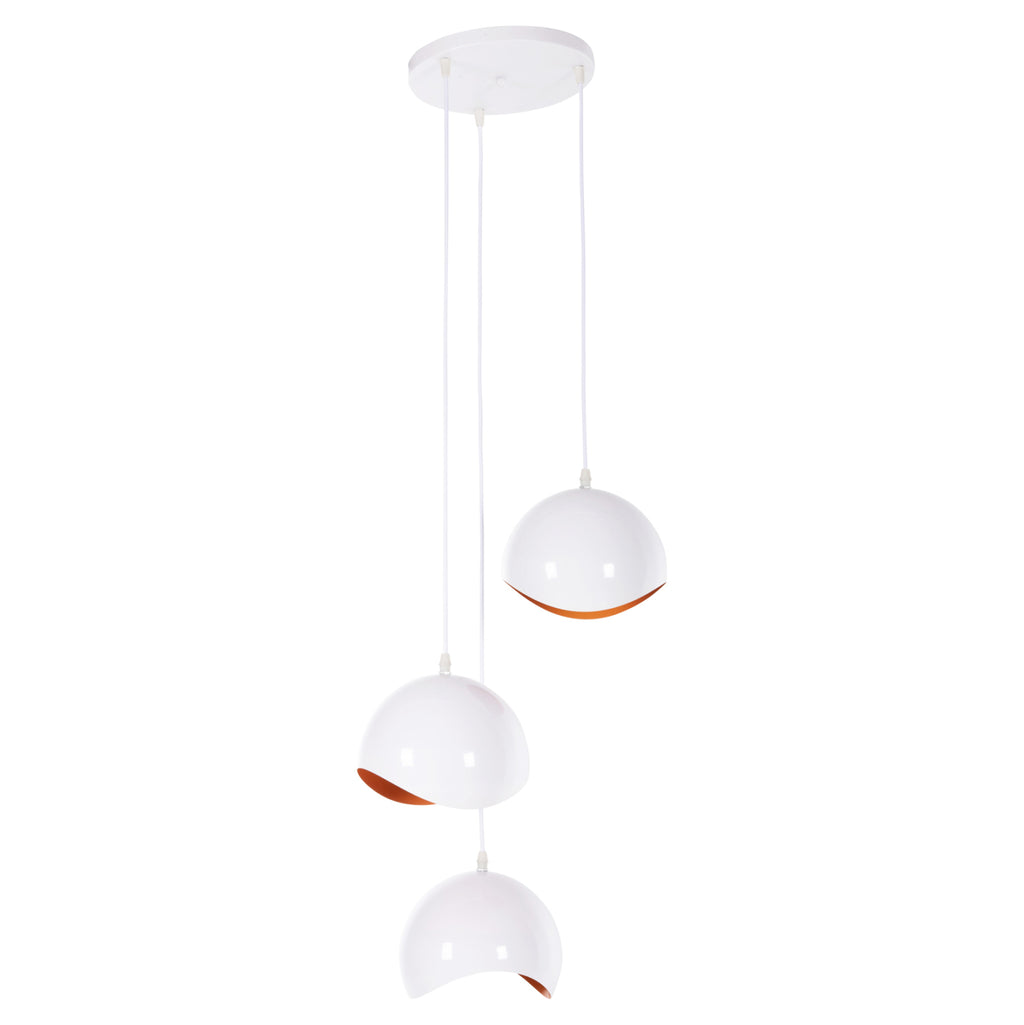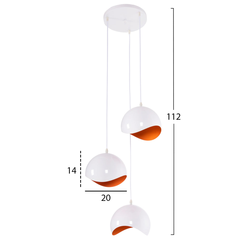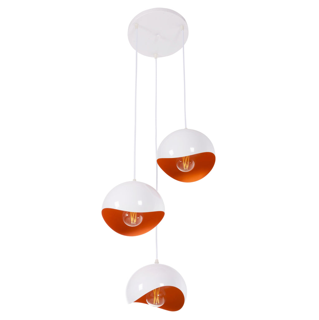 Оставете светлината да се разпространи в пространството с модерен и красив таван с 3 лампи, завършвайки вашата декорация. Солидните сферични БЕЛИ метални капачки с ОРАНЖЕВ интериор в модерен дизайн с извивки на различни височини ще придадат нов образ на вашето пространство. ТЕХНИЧЕСКИ ХАРАКТЕРИСТИКИ: Тип цокъл на крушката: Е27 обикновен цокъл на крушката Тип на крушката: Препоръчително е да се използва LED 20w Размери: Φ20x112H cm. Височина на шапката: 14см. ПОДДРЪЖКА: Най-важното за тази конкретна лампа е редовното й почистване от прах. Ако имате време, разбира се, използвайте влажна кърпа и я направете да изглежда като нова. *Лампата не е включена в цената **Точното цветопредаване на продукта може леко да се различава от действителния продукт поради различните настройки на всеки монитор. ***Лампата изисква сглобяване