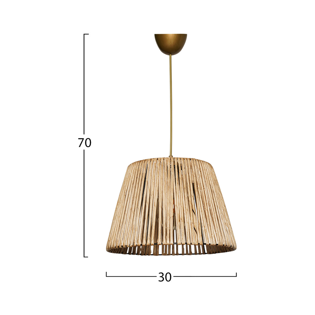 Плафон, с бамбукова шапка в естествен нюанс. Лампа с изключително качество, с подчертан дизайн, оригинален и елегантен стил, за обновяване на декорацията на вашето лично пространство. Изработена от метална рамка, изключително издръжлива и бамбукова шапка. Приема крушка E27, Max 60Watt, която не е включена в пакета. Размери: 30х30х70 см. Европейско производство и произход. Продуктът се предлага във фабрична опаковка.