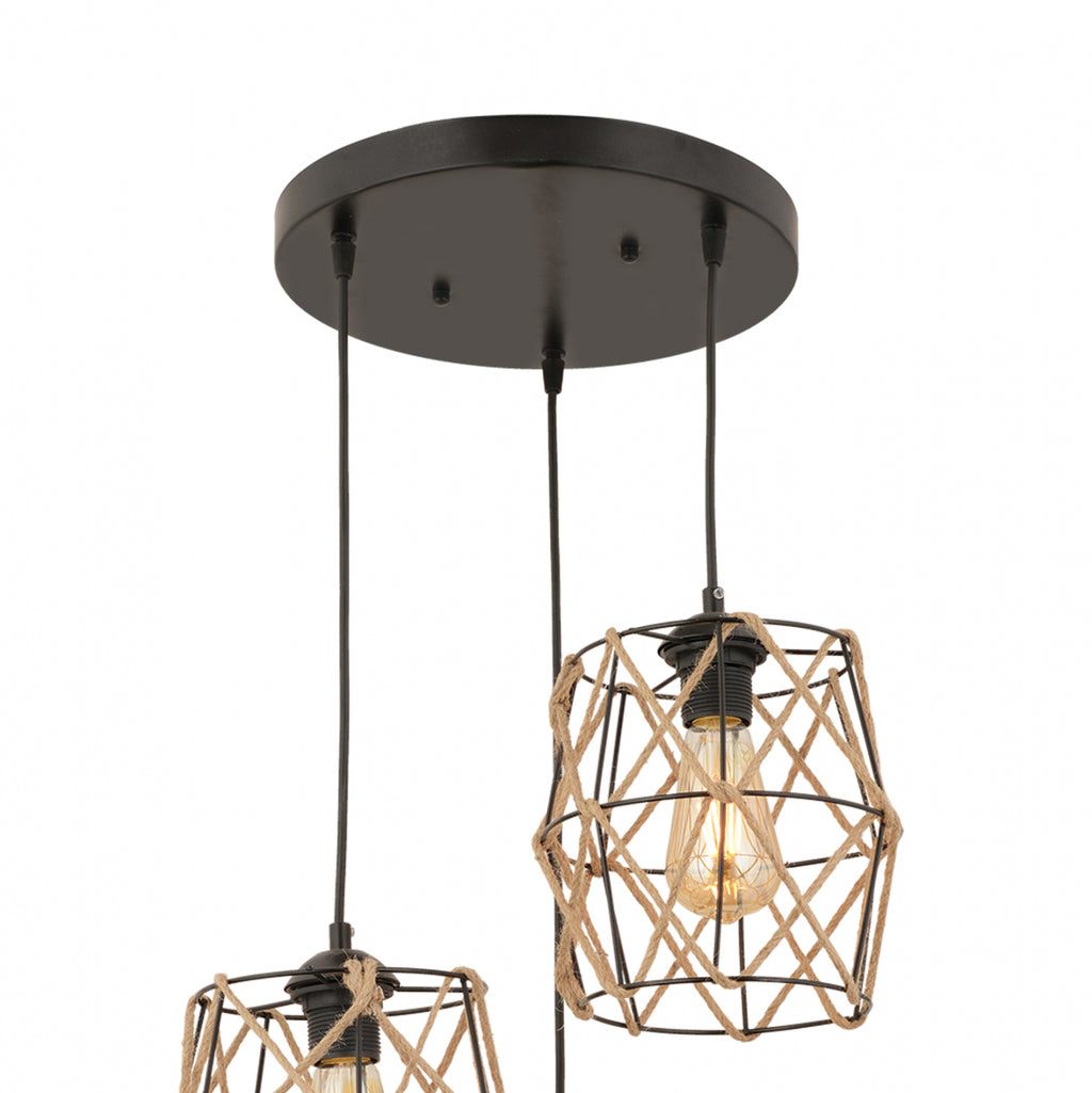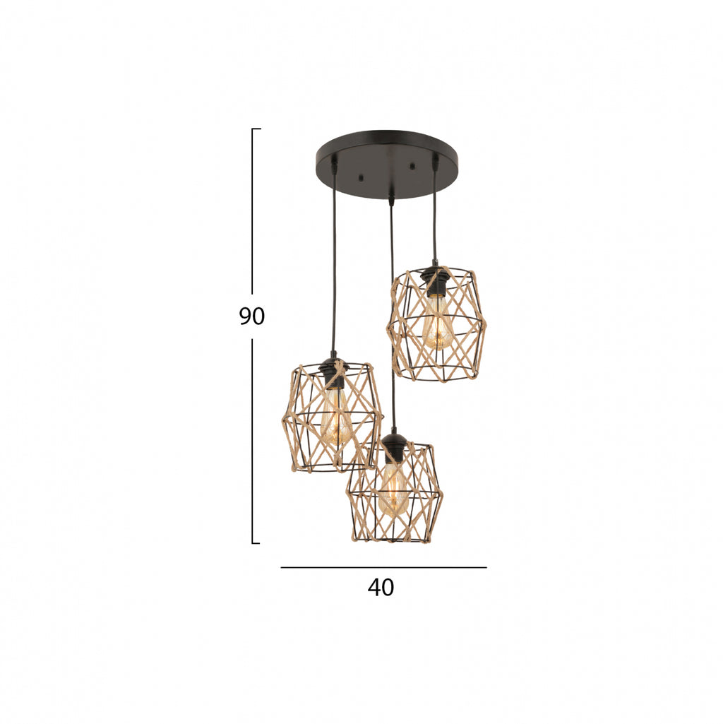 Плафон, в черен абажур с натур. Лампа с изключително качество, с подчертан дизайн, оригинален и елегантен стил, за обновяване на декорацията на вашето лично пространство. Изработен от метална рамка, изключително издръжливо и подсилено въже. Приема крушка E27 и може да използва LED крушки. Дължината на кабела се регулира. Размери: 40х90см. Европейско производство и произход. Продуктът се предлага във фабрична опаковка.