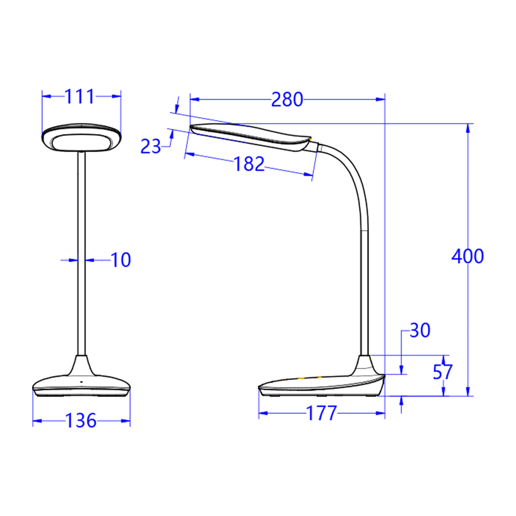 Представяме ви чисто новата гама настолни лампи BLAIN - най-добрите LED настолни лампи, които да осветяват вашето работно пространство или домашен офис! MH4444.02 е изработена от ЧЕРЕН матов ABS материал, тази универсална лампа предлага 3 опции за цветова температура, което ви позволява да създадете перфектната атмосфера за всяка задача. Пригответе се да бъдете изумени от функцията за двойно затъмняване, която ви дава прецизен контрол на яркостта, осигурявайки оптимално осветление независимо от времето на деня. И най-добрата част? Тази невероятна лампа има функция за нощна светлина, превръщайки я в нощна лампа, както и осветление на страничния панел, което осветява още по-голяма площ! Не се задоволявайте с обикновени лампи - надстройте дома си с изключителната гама осветление на BLAIN и усетете разликата. Поръчайте своя днес! ТЕХНИЧЕСКИ ХАРАКТЕРИСТИКИ: Мощност: 10W Напрежение: AC100-240V, DC12V (включен захранващ кабел) Цветова температура на светлината: 3000K-4000K-6500K (±300K) Лумени: 520 макс. CRI: по-голямо или равно на: 90a Има CE & ROHS сертификат НАБЪРЗ ПРЕГЛЕД: •3 опции за цветна температура •Осветление на страничния панел •Функция за двойно затъмняване •Функция за нощно осветление МАТЕРИАЛ ЗА ПРОИЗВОДСТВО: ABS: Това е твърд и издръжлив вид пластмаса с качествено покритие, обикновено в матов вариант. РАЗМЕРИ: (подробни размери на чертежа в секцията снимки) 13.6x17.7x40H cm. ** Цветопредаването на продукта може леко да се различава от неговото фотографско представяне на вашия екран.