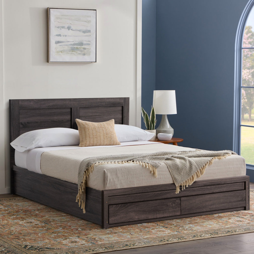 Много е важно да започнете деня в страхотно настроение. И ние постигаме това, като се събуждаме във фантастично легло. Леглото CAPRI с двоен матрак с размери 150x200 см е отлично качество, класически и безопасен избор, който ще пасне на всяка спалня. Неговата характеристика е, че лежи директно на пода и се възползва от пространството под дъските на леглото с 2 лесни за използване чекмеджета, които излизат от страната на "крака" (повърхността срещу таблата). Всички ъгли са квадратни без извивки, а цветът CHARCAL е приятен и може да се комбинира с множество декоративни шарки във вашето пространство.