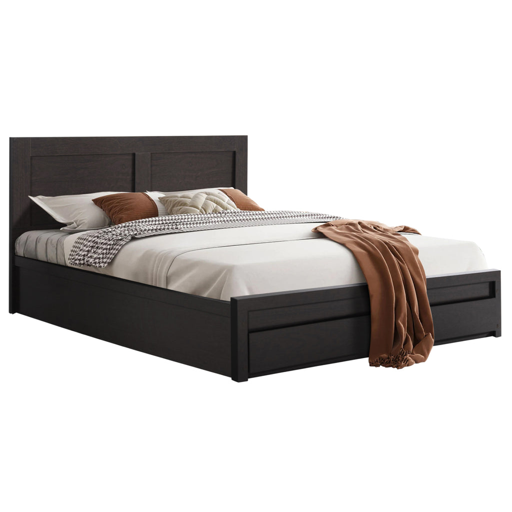 Много е важно да започнете деня в страхотно настроение. И ние постигаме това, като се събуждаме във фантастично легло. Леглото CAPRI с двоен матрак с размери 150x200 см е отлично качество, класически и безопасен избор, който ще пасне на всяка спалня. Неговата характеристика е, че лежи директно на пода и се възползва от пространството под дъските на леглото с 2 лесни за използване чекмеджета, които излизат от страната на "крака" (повърхността срещу таблата). Всички ъгли са квадратни без извивки, а цветът VENGE е приятен и може да се комбинира с множество декоративни шарки във вашето пространство.