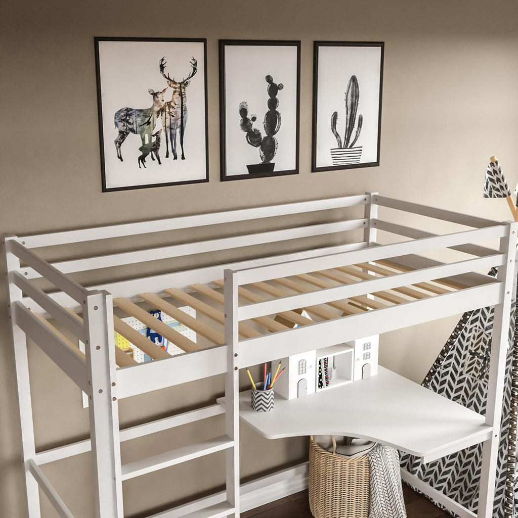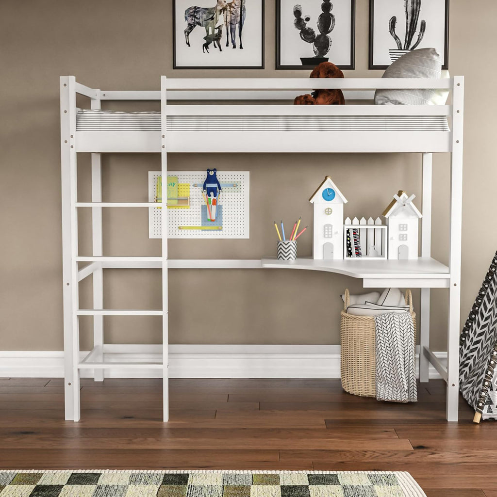 Представяме ви новото детско двуетажно легло AKRON в размер за еднолицев матрак 90х190 см., което е отлично качество, модерен и безопасен избор за детската стая. Дървена е в БЯЛ цвят боядисана с безвреден лак на водна основа и нетоксична, идеална за деца. Матракът е поставен върху дъски от шперплат. Достъпът до леглото е чрез практична стълба, а в долната част има ъглово бюро. Идеално предложение за помещения с ограничено пространство. РАЗМЕРИ: 198x97x172H см. РАЗМЕРИ НА МАТРАК: 90х190 см МАТЕРИАЛ НА ИЗРАБОТКА: Леглото е изцяло изработено от масивна борова дървесина. Борът е мека, бяла или бледожълта дървесина, която е лека на тегло с прави влакна и е устойчива на свиване, подуване и огъване. ПОДДРЪЖКА: За лесно почистване използвайте влажна кърпа и избършете всички повърхности. Не използвайте силни избелващи средства. *Продуктът се доставя несглобен във фабрична опаковка **Точното цветопредаване на продукта може леко да се различава от действителния продукт поради различните настройки на всеки монитор. ***Матрака не е включен в цената