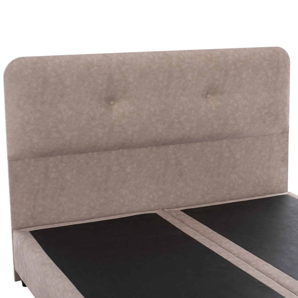 Таблата е висока и декорирана само с 2 копчета, а цялата покривка на леглото е изработена от релефен плат тип NUBUCK. БЕЖОВИЯТ цвят в цялото легло е неутрален и може да се комбинира с различни декоративни мотиви. Основната характеристика на това легло обаче е, че то не следва класическата конструкция с ламелни рамки за опора на матрака, а се състои от непрекъсната повърхност, върху която се поставя матракът! При двулицев матрак с размери 150x200 см.