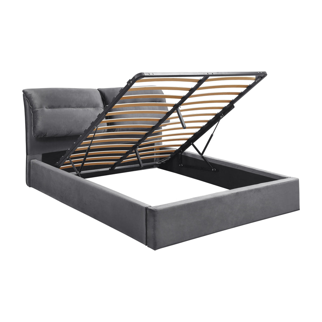 Леглото е проектирано за стандартен матрак 160x200 см. Повдигащият механизъм осигурява просторно отделение за завивки, възглавници и сезонно облекло.