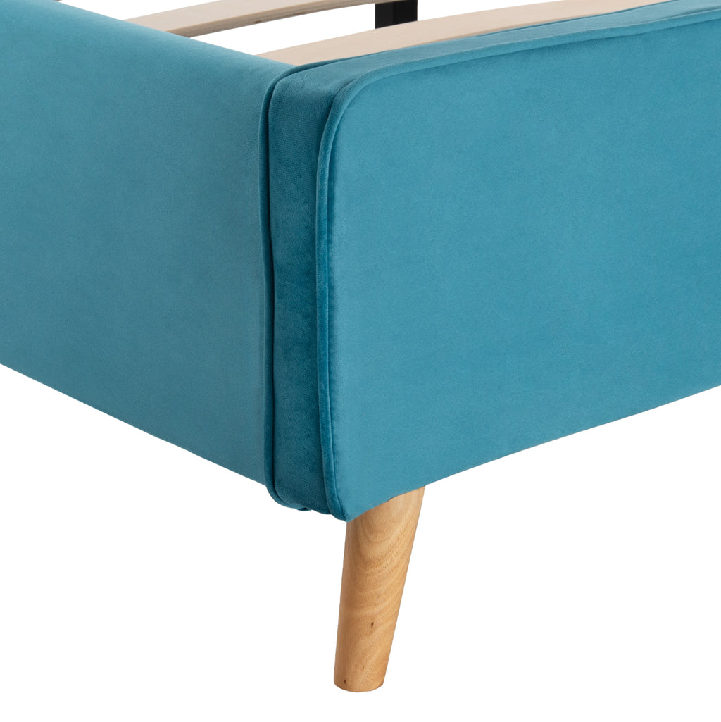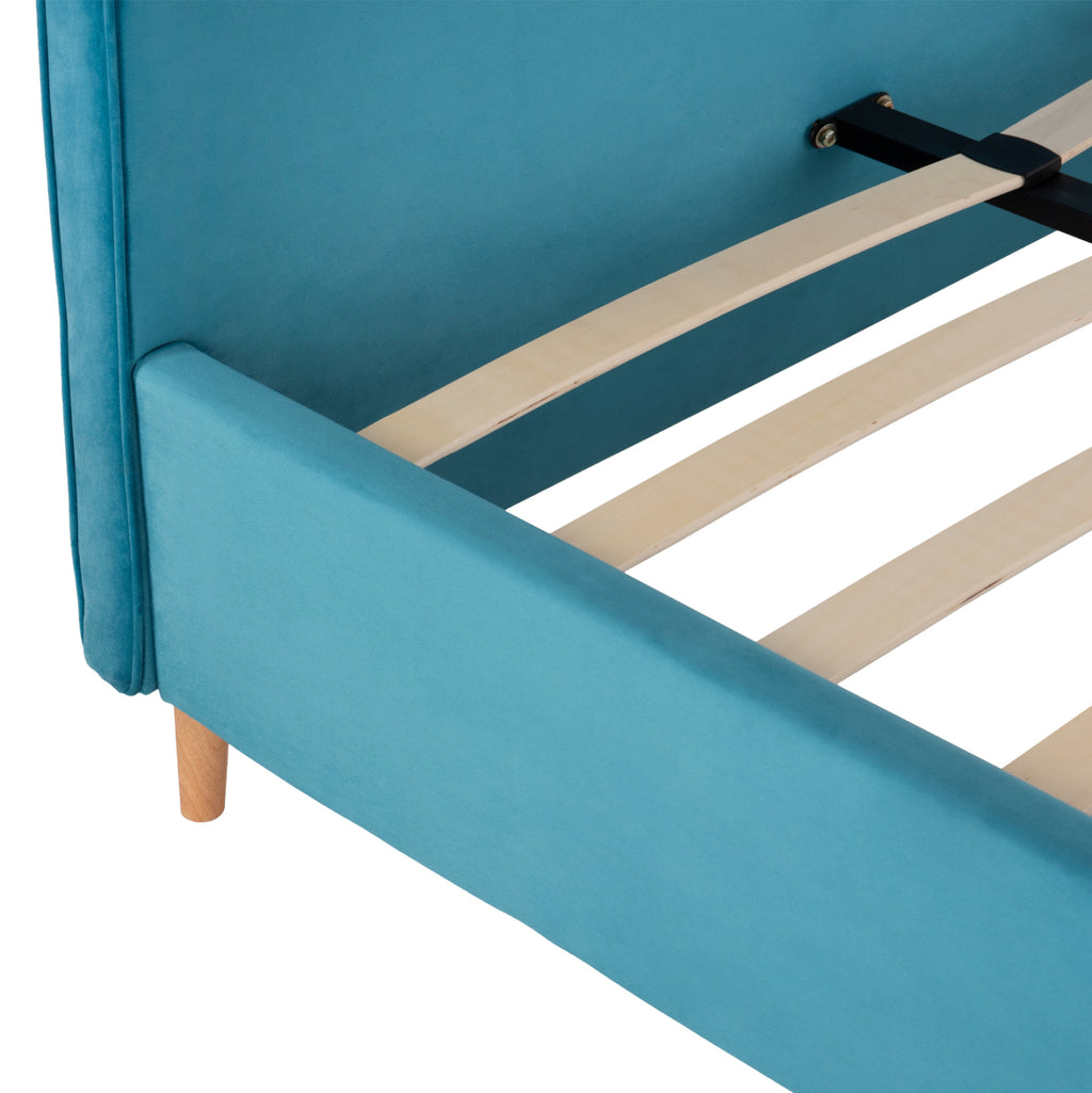 С легло MAYLIN можете да се насладите на всеки момент от съня си. Има висока табла с кадифена подплата в ТЮРКОАЗЕН цвят, а матракът "седи" върху анатомични дъски, следвайки традиционния начин на оформяне на леглото. Модерно и семпло предложение, което ще обнови вашата спалня. РАЗМЕРИ: Външни размери: 133x214x110H см. Размери на матрака: 120х200 см. МАТЕРИАЛИ НА ИЗРАБОТКА: Леглото е изработено от дърво, както и краката му, което му придава здравина и издръжливост. Тапицерията е изцяло изработена от висококачествена кадифена материя, придаваща атрактивен вид и изискан чар на декорацията на спалнята. Кадифето е плат, който е мек, спокоен, възхитителен и изискан. В миналото се е изработвал предимно от копринени влакна и всъщност с много специална обработка, която е изисквала много време и специален стан. За щастие днес нещата са се променили и тази прекрасна материя е достъпна за всеки. ПОДДРЪЖКА: Конструкционните материали на леглото позволяват лесна поддръжка. Едно минаване с мокра кърпа е достатъчно, за да освежите леглото и винаги да изглежда като ново. Особено плюшената тъкан на подплатата може лесно да се почисти с прахосмукачката на нежна настройка с помощта на предоставената мека четка и винаги по посока на зърното. ПРЕДИМСТВА: Това легло има сравнително високи крака, които позволяват достъп до пода отдолу за почистване, без да се налага да се движите. Освен това опорните бордове на матрака са включени в комплекта и се монтират много лесно, също толкова лесно се сглобяват. Неговият модерен и семпъл дизайн може да се комбинира с много декоративни шарки в пространството. Идеален за дома, както и за хотели и Airbnb. **Леглото се доставя разглобено с подробни инструкции за сглобяване.