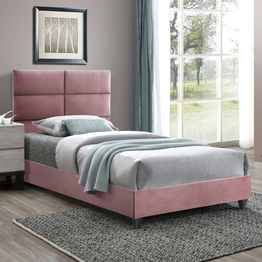 Таблата е висока и тапицирана в ватиран стил в големи правоъгълници, докато цялата покривка на леглото е изработена от кадифена материя. Цветът ROTTED APPLE в цялото легло е впечатляващ и може да се комбинира с множество декоративни шарки.