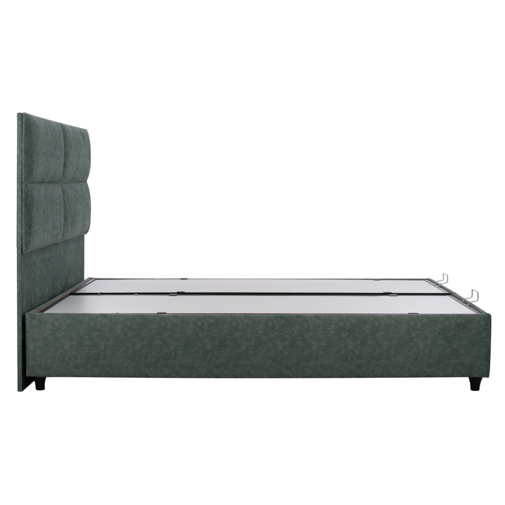 КГ622.07- Легло MILO --- Великият древен поет Омир каза в Илиада, че сънят е царят на всичко. И на хората, и на боговете. Със сигурност можем да ви осигурим "кралски" сън! С легло MILO С 3-ГОДИШНА ГАРАНЦИЯ НА РАМКИТЕ никога няма да поискате нищо друго. Таблата е висока и тапицирана в ватиран стил в големи правоъгълници, а цялата облицовка на леглото е от релефна дамаска NUBUCK. ЗЕЛЕНИЯТ цвят в цялото легло е красив и може да се комбинира с различни декоративни мотиви. Но основната характеристика на това легло е, че не следва класическата конструкция с ламелни ламели за опора на матрака, а се състои от една непрекъсната повърхност (2 ПДЧ), върху която се поставя матракът! В допълнение, всяка повърхност от ПДЧ е повдигната с метален предпазен механизъм с 4 амортисьора и метални дръжки, предлагащи голямо място за съхранение. В матрак с размери 160х200см. ще отговаря на всяка ваша мечта! РАЗМЕРИ: 160x202x34H (до повърхността на основата) cm. Височина на таблата: 120 см. Височина на крака: 7 см. Размери на мястото за съхранение: 75X200X20 см (X2) Размери на матрака: 160x200 см. КОНСТРУКТИВНИ МАТЕРИАЛИ: Рамката на леглото е дървена, което прави леглото изключително здраво и издръжливо, благодарение на подсилената конструкция. Механизмът за съхранение е метален за устойчивост на тегло и време. Краката са изработени от подсилен полипропилен. Полипропиленът е особено устойчив на тегло и вода, като същевременно има голяма устойчивост на температури до 125 градуса по Целзий. Освен това неговата издръжливост не се ограничава до тегло, вода и температура, но е необичайно устойчив на много химически разтворители, киселини и основи. Дамаската е изработена изцяло от висококачествена релефна дамаска NUBUCK, придаваща атрактивен вид и изискан чар на декорацията на спалнята. Подложката на матрака е изработена от ПДЧ покрита с противоплъзгаща подплата. ПОДДРЪЖКА: Конструкционните материали на леглото позволяват лесна поддръжка. Материята тип набук няма чувствителността на другите видове подплата, така че това от своя страна не е проблем при нейната поддръжка и почистване. Забърсване с влажна кърпа обикновено е достатъчно за правилно почистване. Добре е да избягвате белините и избелващите средства. ПРЕДИМСТВА: Легло MILO е специално предложение, което ще зарадва своите потребители. Но липсата на класически пружинен бокс и конструкцията с ПДЧ опора на матрака е голямото предимство на това легло. В края на краищата най-добрият начин за поддържане на един матрак е точно това. И сякаш това не е достатъчно, умното съхранение под основата на матрака допълва използваемостта на това легло. Това е идеално легло както за дома, така и за бизнес помещения, като хотели и Airbnb. Освен това дори сглобяването му е много лесно, тъй като завинтваш краката към подложките и след това регулираш таблата. Просто и красиво създайте спалнята на вашите мечти! Матракът не е включен в цената