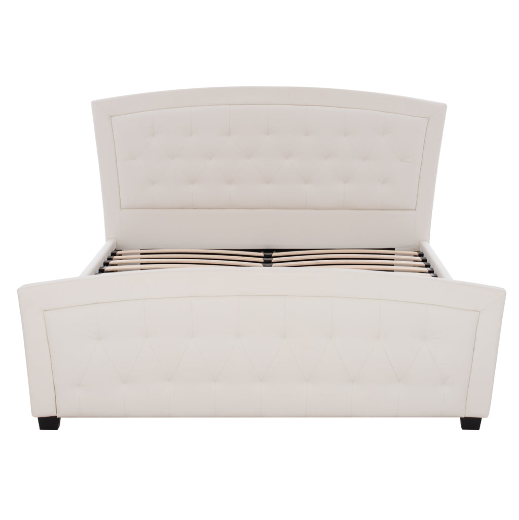 Легло ODELIA е красиво и извивките му както на таблата, така и на таблата създават усещане за релаксация и плаване в пространството. Основната особеност обаче е облицовката на цялото легло с бяла PU кожа и всъщност в капитониран стил както на таблата, така и на подножието. Накратко...: Капитонирането е вид плат или техника на шиене, при която шевовете и втулките образуват различни шарки и гънки или неравности. При куилтинга материята е като "надуваема лодка", която се държи от шевовете, които на местата си "потъват" в тъканта. Тоест, много малки подпухнали издатини се създават в ватирането, които се открояват една от друга по шевовете. Тези неравности могат да бъдат диаманти, квадрати, ивици, както и много други дизайни. Целта на този стил е да разчупи монотонността чрез създаване на различни шарки върху тъканта. Това подобрява цялостния образ на обекта. Придава усещане за лукс, както и детайлност в дизайна. Матракът се опира на традиционни, но ергономични носещи дъски, а краката са в черен нюанс, създаващ приятен двуцветен ефект. РАЗМЕРИ: Външни: 174х213х110см. Височина на таблата: 110 см. Височина на поставката за крачета: 60 см. Странична височина: 35 см. Размери на матрака: 150х200 см. МАТЕРИАЛИ НА КОНСТРУКЦИЯТА: Рамката на леглото е изработена от дърво, което му придава здравина и издръжливост. Краката са изработени от подсилен полипропилен. Полипропиленът е особено устойчив на тегло и вода, като същевременно има голяма устойчивост на температури до 125 градуса по Целзий. Освен това неговата издръжливост не се ограничава до тегло, вода и температура, но е необичайно устойчив на много химически разтворители, киселини и основи. Цялото легло е тапицирано с висококачествена PU кожа. Това е синтетична кожа и има ленена текстура. Синтетичната кожа е еволюцията на изкуствената кожа, но с основната характеристика, че не се различава лесно от окото от истинската кожа. Съставът му е основно полиуретан и полиамидни микровлакна, за разлика от изкуствената кожа, която основно съдържа PVC. ПОДДРЪЖКА: Благодарение на издръжливите строителни материали, леглото е удобно за употреба. По-специално PU кожата не се нуждае от специална поддръжка, защото не се износва лесно, не показва "стрии" и цветът не се влияе от слънчевата радиация. Едно минаване с мека влажна кърпа е достатъчно. Ако има петно, което не излиза с мокра кърпа, тогава се използва само мек препарат с неутрално действие. ПРЕДИМСТВА: •Здрава конструкция •Естетично съвършенство с ватирана PU кожа и извивки •Размер на двоен слой 150x200cm •Поддържащи дъски са включени в пакета •Лесно сглобяване •Идеално легло както за дома, така и за професионални пространства, като хотели и Airbnb. Матракът не е включен.