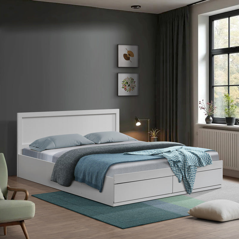 Серията Olympus съчетава простота с функционалност, предлагайки удобно и практично решение за спалнята. Неговият минималистичен дизайн с изчистени линии създава усещане за топлина и спокойствие. Интегрираната база за съхранение осигурява допълнително пространство за организиране на лични вещи, което го прави идеален избор за вашата спалня. Технически характеристики: • Изработен от висококачествени ПДЧ и MDF с издръжлив хартиен дървесен фурнир, устойчив на износване, повреди и време. • Предлага се в бял цвят. • Леглото е с дървени летви, които осигуряват спокоен и освежаващ сън. • Включва две чекмеджета за съхранение на вашите вещи. • Съвместим с матрак 150х200 см (не е включен в цената). Размери на продукта: • Дължина: 155 см • Ширина: 205 см • Височина: 80 см Забележки: • Продуктът се доставя разглобен, във фабрична опаковка, с подробно ръководство за монтаж. • Цветовият нюанс на продукта може леко да се различава от неговото фотографско представяне на вашия екран.