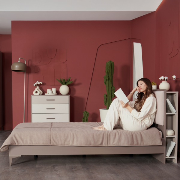 Легло RIGA разполага с тапицирана табла, която включва практични ниши – идеалното място за любими книги или лични вещи. Конструкцията е подсилена с допълнителна опора, за да гарантира стабилност и здравословен сън, а високите крачета позволяват лесно и безпрепятствено почистване под леглото. Изработено от висококачествени материали, леглото съчетава дълготрайна издръжливост с изключителен комфорт.