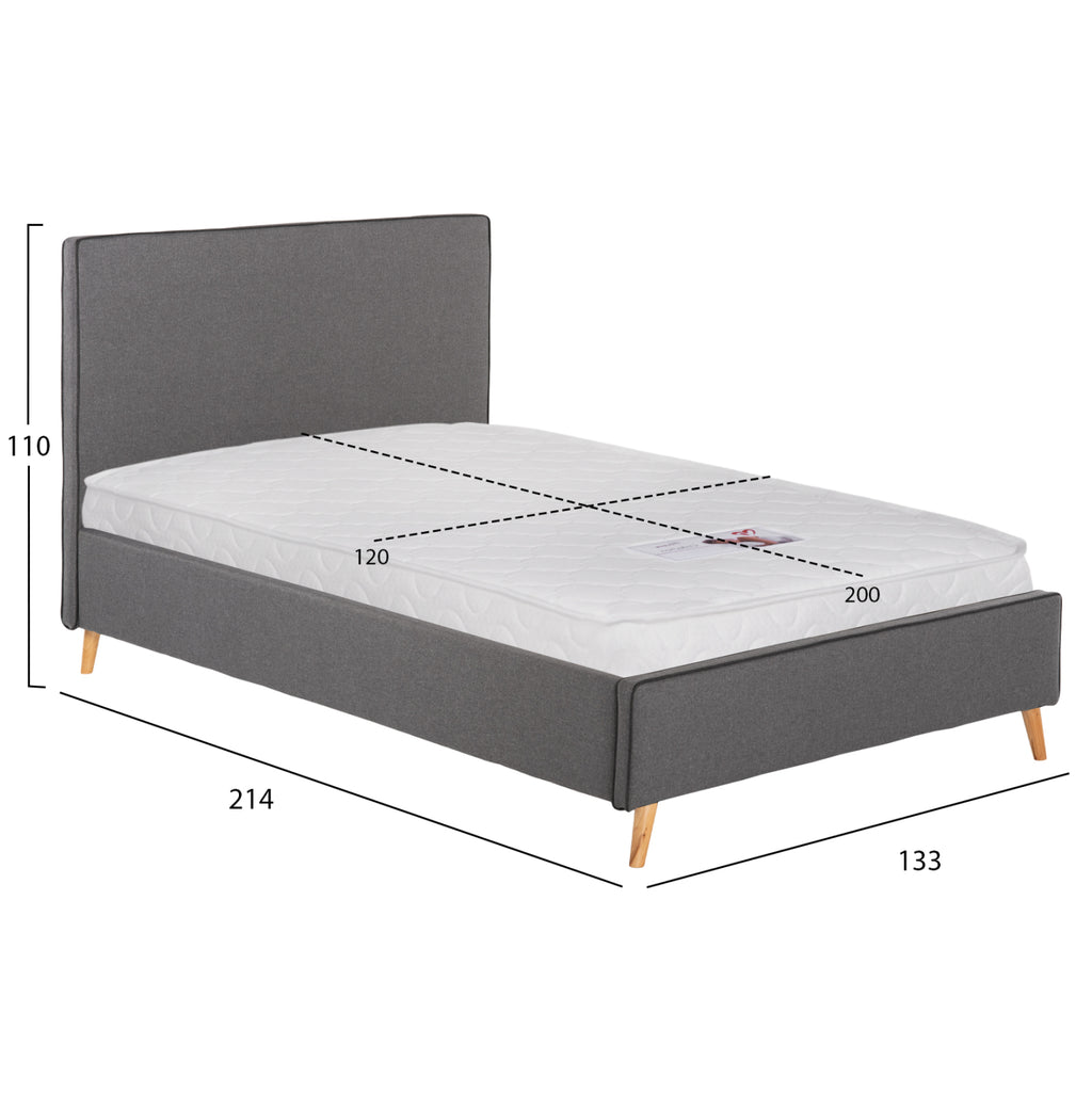 Полудвойното легло MAYLIN е тапицирано с качествен плат в СИВ цвят с по-тъмен кант по шевовете. Матракът (предлага се с РОЛНО ОПАКОВАНЕ*), който придружава леглото, е добавен към два реда анатомични летви, двулицев е и е от ПЯНА без пружини. Краката са дървени в естествен цвят. *Ролното опаковане означава, че го разгъвате върху леглото си и го оставяте за около 48 часа, докато придобиете правилната си форма чрез абсорбиране на въздуха и е готово за употреба. РАЗМЕРИ: 133x214x110H см. Размери на матрак: 120x200 см.----- Височина на матрак: 15 см. ПОДДРЪЖКА: За да поддържате кадифето чисто и пухкаво, е добре да го почистите с прахосмукачка веднъж седмично. Прикрепете мека четка, настройте деликатната програма на прахосмукачката си и изметете цялата повърхност по посока на влакната. Ще, че прахът веднага видите ще бъде отстранен и косъмът на платата ще стане като нов. При никакви обстоятелства не трябва да търкате кадифена материя. Дори и да се наложи да намалите петно, не го търкайте. Намокрете мека кърпа с вода и потупайте локално върху петното. *Продуктът се доставя несглобен във фабрична опаковка, с инструкции за сглобяване. ** Цветопредаването на продукта може лесно да се различава от фотографското муне, което се показва на вашия екран.