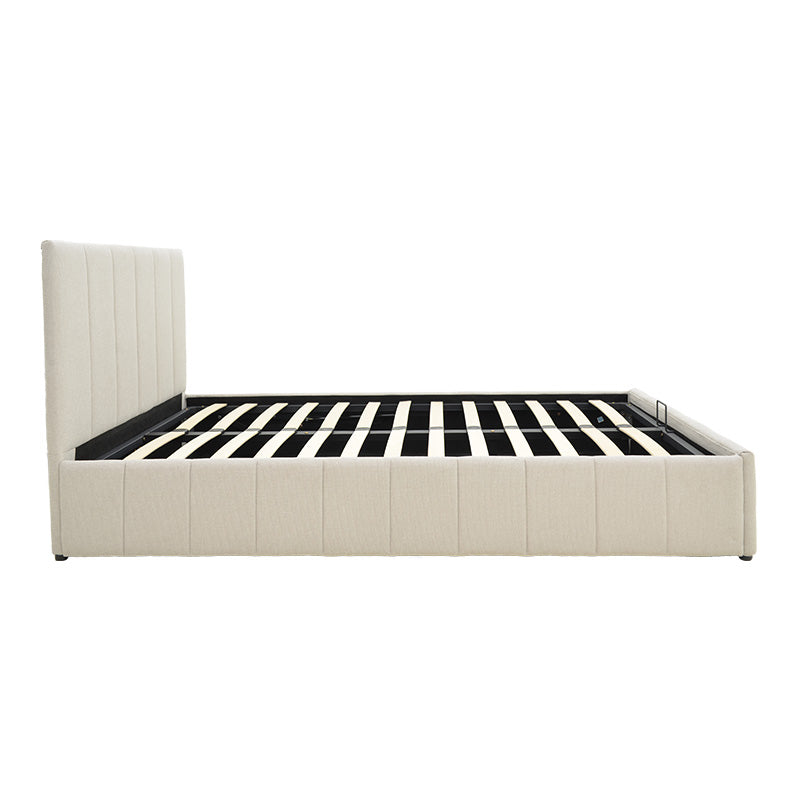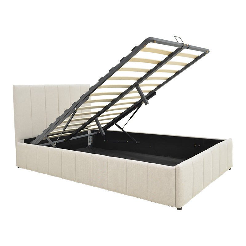 Легло Snuggle с място за съхранение - Бежов плат 120x200 см