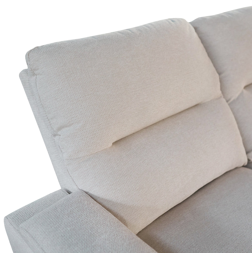 Ъгловият диван SYNTHIA за 3 души е проектиран да съчетава интелигентна функционалност със съвременен комфорт. Тапициран с елегантна бежа текстурирана материя, той внася топлина и изтънченост във всяко жилищно пространство, като същевременно предлага множество вградени функции, които увеличават ежедневната релаксация.