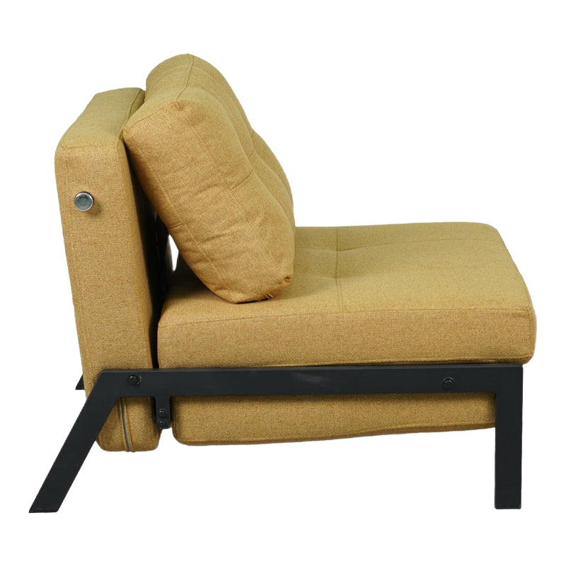 - Здрава метална рамка за дълготрайна издръжливост, тапицирана с висококачествен жълт плат.