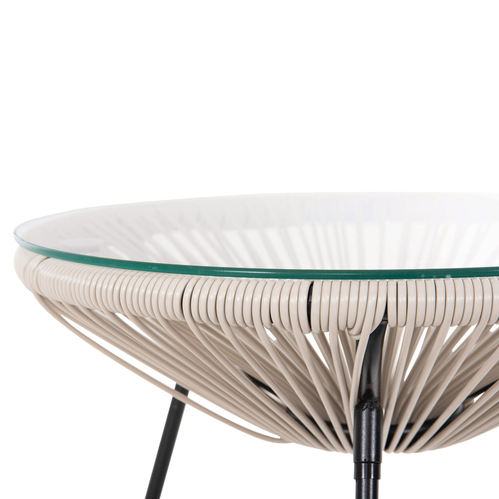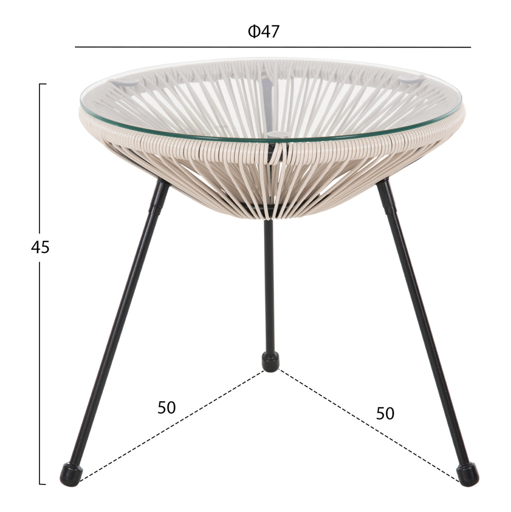 ALLEGRA е ниска кръгла помощна маса, предимно за външни пространства. Стои върху основа с 3 черни метални крака. Масата е конична от синтетичен ратан в БЕЖОВ цвят, а повърхността й е безопасно стъкло. Красива маса, която в комбинация със столове от същата серия ще бъде невероятна част от вашето пространство. РАЗМЕРИ: Φ47x45Y см. Разстояние между краката: 50х50 см. МАТЕРИАЛИ НА КОНСТРУКЦИЯТА: 3-краката основа е изработена от здрав 13 мм метал, придаващ здравина и има пластмасови капачки в долната част на краката за защита на пода. Масата е изработена от синтетичен ратан, който е синтетичен материал, изработен от PVC, тоест висококачествени изкуствени влакна. Това дава отлична здравина и издръжливост при екстремни горещини или студени условия. Повърхностното стъкло е закалено или "нечупливо" стъкло, което е вид безопасно стъкло около четири пъти по-здраво от обикновеното стъкло. И за разлика от обикновеното стъкло, което може да се пръсне на назъбени парчета, когато се счупи, закаленото стъкло се разбива на малки, относително безобидни гранулирани парчета. В резултат на това закаленото стъкло се използва в среди, където човешката безопасност е приоритет, като жилищни приложения и т.н. ПОДДРЪЖКА: Всички строителни материали са лесни за употреба, което го прави много лесен за поддръжка. Всичко, от което се нуждае, е почистване от прах и при необходимост почистване с влажна кърпа. Не използвайте химически почистващи препарати. ПРЕДИМСТВА: •Красив дизайн •Качествени строителни материали •Лесна поддръжка •Устойчивост на времето •Може да се комбинира със столове от същата серия ** Цветопредаването на продукта може леко да се различава от фотографското му представяне на вашия екран.