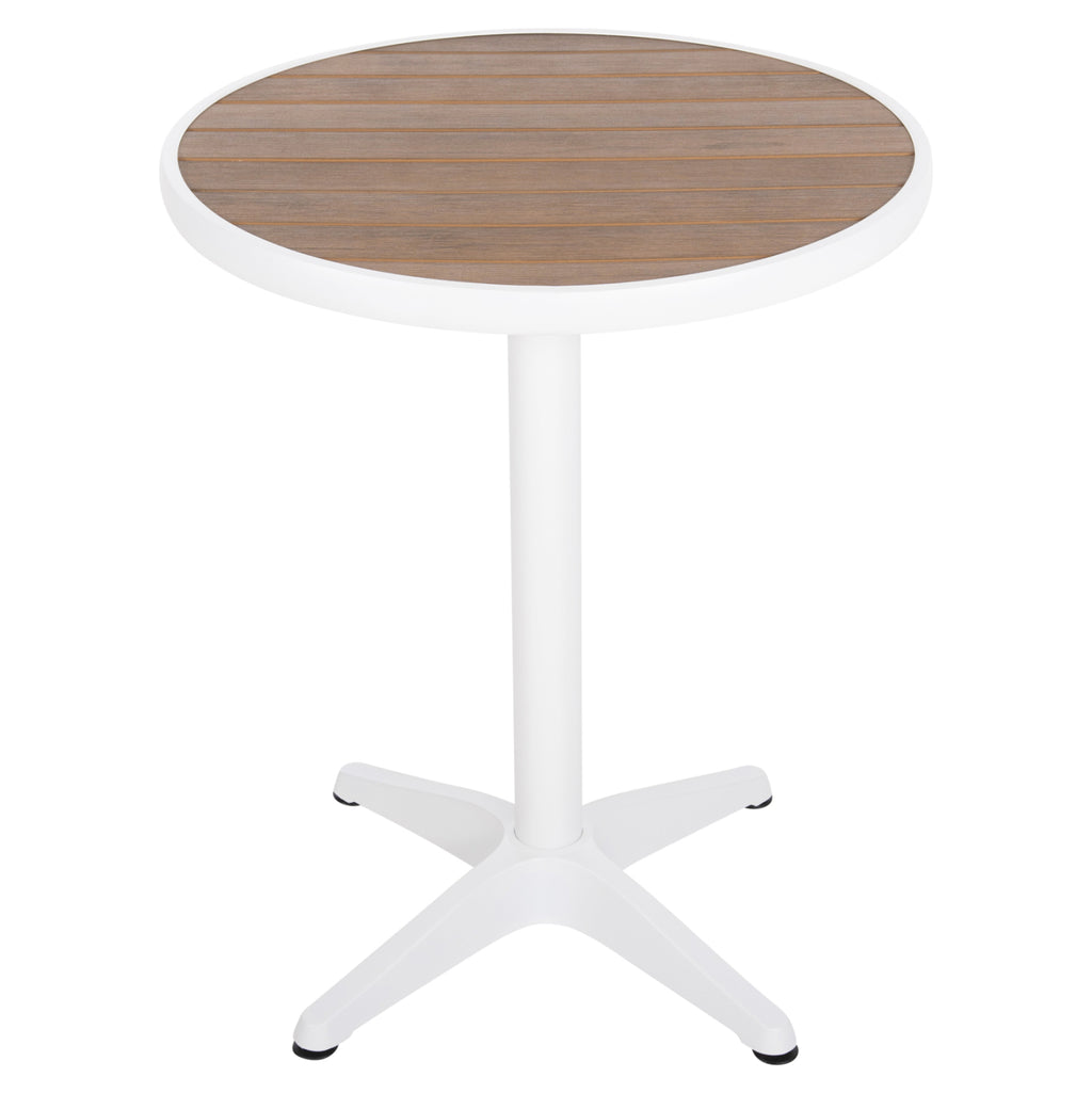 ALEXA е кръгла външна маса с алуминиева конструкция в БЯЛ цвят. Повърхността е от НАТУРАЛНИ дървесни плоскости от полидървесина, монтирани върху широк алуминиев "пръстен", и се поддържа от колона с 4 пирона. Това е красива маса в малки размери, идеална както за дома, така и за бизнес помещения. РАЗМЕРИ: Φ60x73H см. Разстояние между краката: 58х58 см. МАТЕРИАЛИ НА КОНСТРУКЦИЯТА: Рамката е изработена от алуминий с електростатично боядисване. Алуминият е метал с отлични механични свойства и много устойчив на различни форми на корозия по природа и изисква минимални разходи за поддръжка. Може да се рециклира неограничено време, запазвайки характеристиките си без влошаване на качеството. Електростатичното боядисване е процес на сухо покритие, използван като метално покритие чрез електростатичен процес, който след това се „свързва“ към метала чрез топлина. Подходящ е както за вътрешни, така и за външни приложения. Плотът е изработен от полидървесина. Това е форма на пластмасов дървен материал, който е екологичен и изисква малко поддръжка. Пластмасовият дървен материал е 100% рециклируем и в същото време е водоустойчив и издържа на всякакви видове гниене и мухъл. ПОДДРЪЖКА: Можете да забършете всички повърхности с влажна кърпа и това е достатъчно, за да изглеждат вашите мебели отново като нови. За упорити петна можете да използвате мек почистващ препарат. Избягвайте продължителното излагане на повърхността на масата на слънце, както и контакта й с токсични химически продукти. ПРЕДИМСТВА: •Стабилна и безопасна конструкция •Красив дизайн •Съотношение цена-качество *Комплектът се доставя разглобен с подробни инструкции за сглобяване **Точното цветопредаване на продукта може леко да се различава от действителния продукт поради различните настройки на всеки монитор.