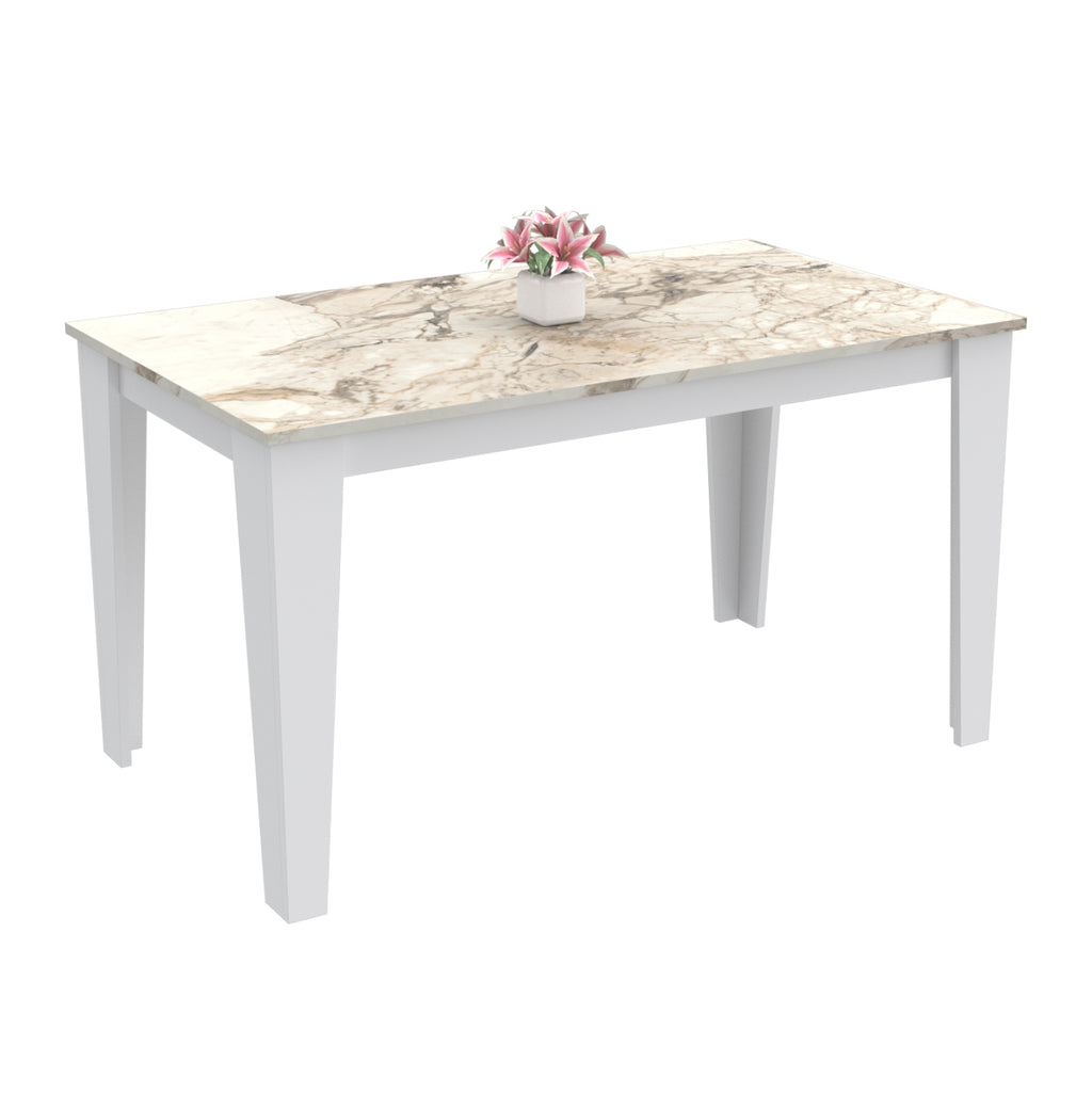 Трапезна маса Boris меламин в бял мрамор-бял цвят 130x75x75см