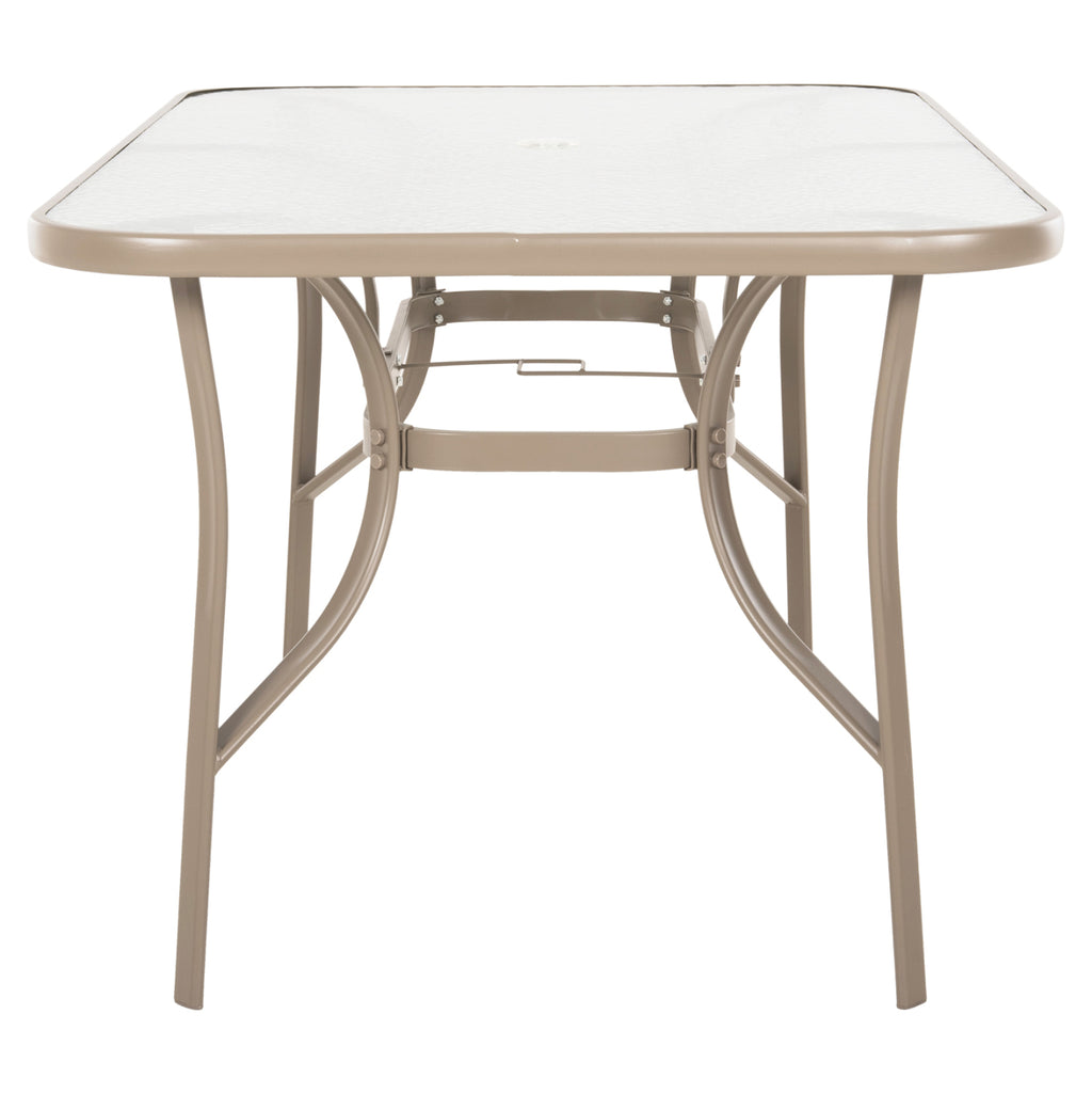Външна маса BRUNO с метална конструкция ШАМПАНСКО и повърхност от матирано стъкло! Това е много популярна маса, която не липсва на почти всеки балкон или градина. Той е правоъгълен със заоблени ъгли, докато повърхността на стъклото е подсилена. Този конкретен дори идва с дупка в центъра за поставяне на чадър. РАЗМЕРИ: 150X90X72H см. Разстояние между краката: 126х66 см. Отвор за чадър: Φ38 мм. МАТЕРИАЛИ НА КОНСТРУКЦИЯТА: Рамката с краката е метална с електростатично боядисване. Електростатичното боядисване е процес на сухо покритие, използван като метално покритие. Електростатичното боядисване е нанасяне на сух прах чрез електростатичен процес, който след това се „свързва“ към метала чрез топлина. Закаленото или "нечупливо" стъкло е вид безопасно стъкло около четири пъти по-здраво от обикновеното стъкло. И за разлика от обикновеното стъкло, което може да се пръсне на назъбени парчета, когато се счупи, закаленото стъкло се разбива на малки, относително безобидни гранулирани парчета. В резултат на това закаленото стъкло се използва в среди, където човешката безопасност е приоритет, като например жилищни приложения и т.н. ПОДДРЪЖКА: От горното може да се види, че не е необходима специална поддръжка. Достатъчно е минаване с влажна кърпа или дори със специални почистващи препарати. ПРЕДИМСТВА: •Класически и вечен дизайн •Отвор за чадър •Невероятно съотношение цена-качество *Продуктът се доставя в несглобен вид и се сглобява лесно, тъй като всички необходими части са включени в опаковката. ** Цветопредаването на продукта може леко да се различава от неговото фотографско представяне на вашия екран.