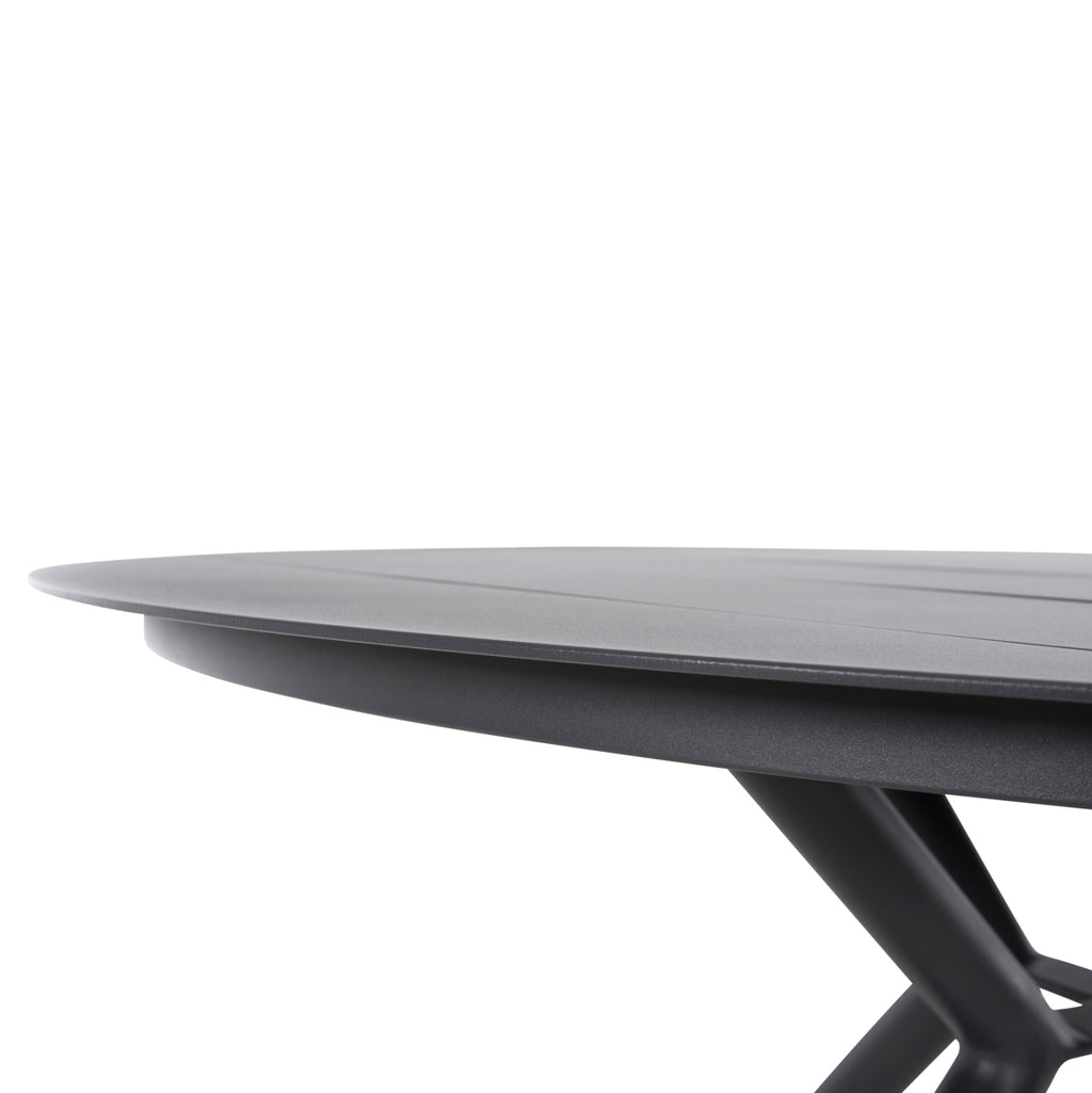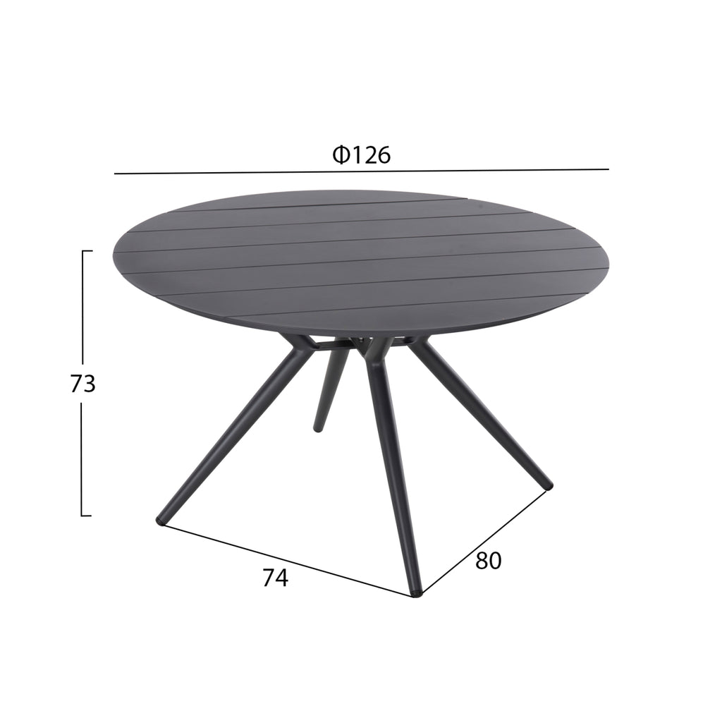 Открийте новото допълнение към нашата продуктова гама. Кръгла маса HIGER, изработена изцяло от алуминий в цвят CARBON. Опира се на 4 крака, които се съединяват над и под повърхността. Кръглите маси са особено практични и красиви, защото нямат плотове и "водачи", нито ъгли или крака в ъглите, които много пъти създават неудобни ситуации. Наистина ще обикнете HIGER! РАЗМЕРИ: Φ126x73Y см. Височина на крака: 71 см. Разстояние между краката: 74х80 см. МАТЕРИАЛИ НА КОНСТРУКЦИЯТА: Масата е изработена от алуминий. Алуминият е „зелен“ материал, който може да се рециклира неограничено време, като запазва характеристиките си без влошаване на качеството. По своята същност е устойчив на корозия. ПОДДРЪЖКА: Не е необходима специална поддръжка, благодарение на издръжливостта на алуминия. В идеалния случай използвайте много мека кърпа или гъба, обилно количество вода и мек почистващ продукт, като препарат за миене на съдове. Не изисква специална поддръжка, тъй като не корозира. Сапунът и водата са достатъчни, за да го поддържате чист и блестящ. ПРЕДИМСТВА: HIGER е маса, която определено хваща окото! Комбинирайте го със столове със същата естетика и преобразете вашето външно пространство. Модерната му конструкция може да се комбинира с много цветове и различни стилове на декорация и със сигурност ще надгради естетиката на вашето пространство! Продуктът се доставя без поръчка