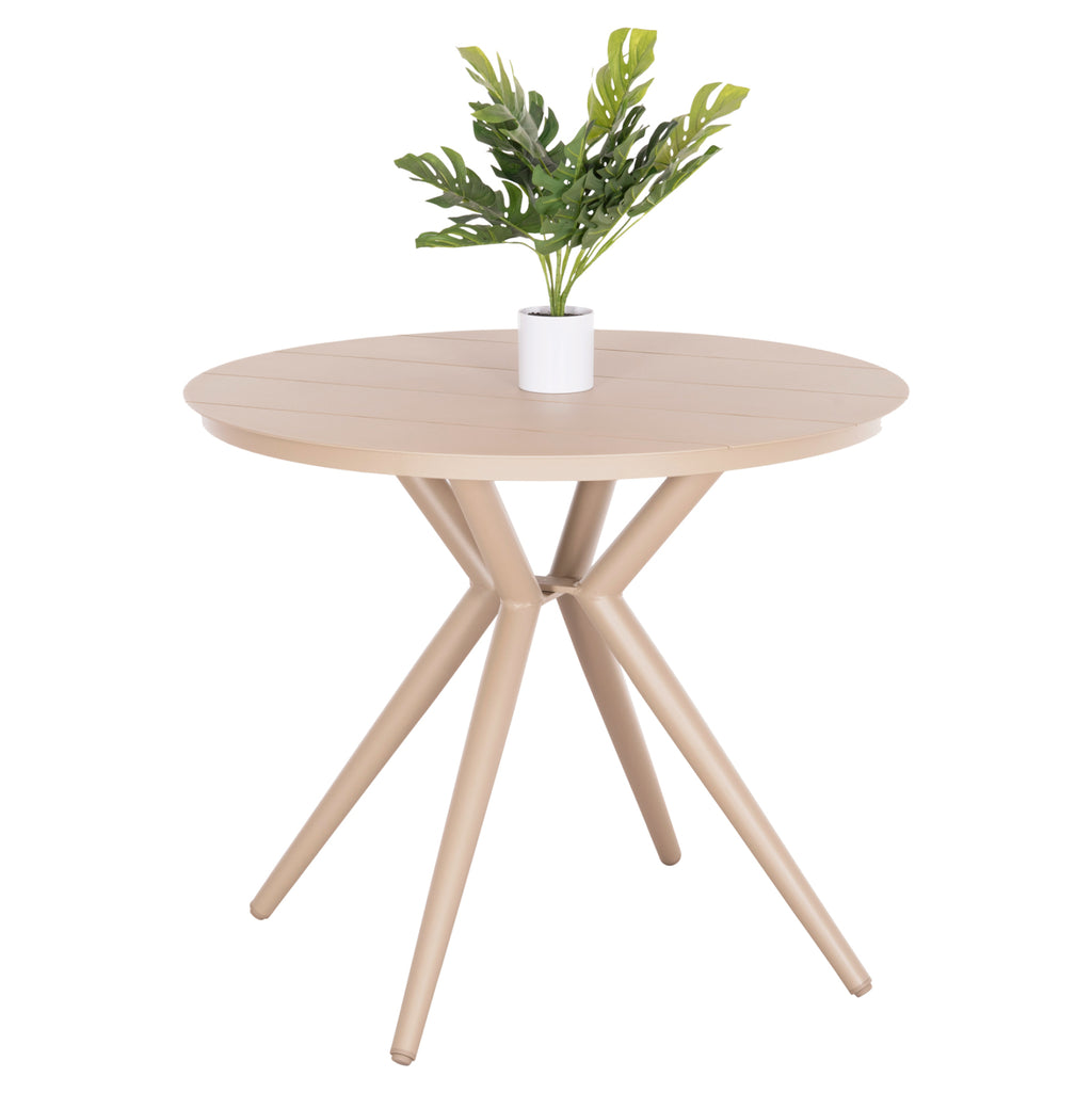 Кръгла алуминиева маса HIGER – стил и устойчивост в цвят капучино