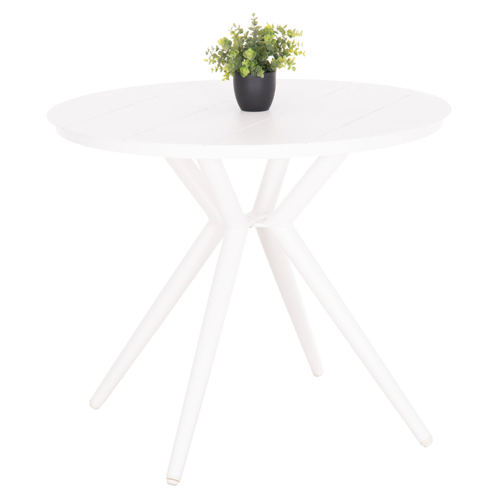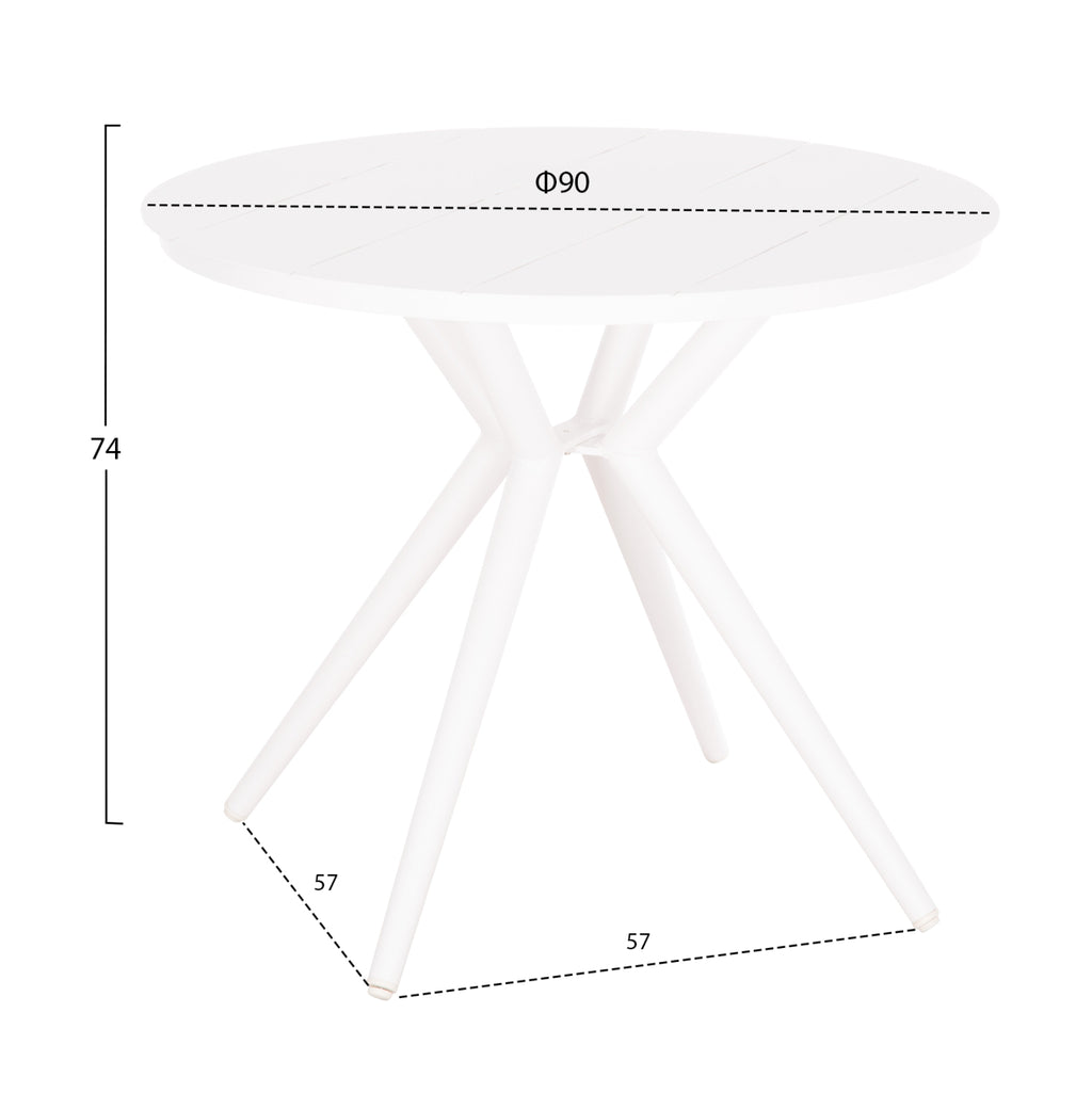 Кръгла маса HIGER е изработена изцяло от алуминий в БЯЛ цвят. Опира се на 4 крака, които се съединяват над и под повърхността. Кръглите маси са особено практични и красиви, защото нямат плотове и "водачи", нито ъгли или крака в ъглите, които много пъти създават неудобни ситуации. Наистина ще обикнете HIGER! Комбинирайте го със столове със същата естетика и преобразете вашето външно пространство. РАЗМЕРИ: Φ90x74Y см. Разстояние между краката: 65-57x65-57 см. МАТЕРИАЛИ НА КОНСТРУКЦИЯТА: Масата е изработена от алуминий. Алуминият е „зелен“ материал, който може да се рециклира неограничено време, като запазва характеристиките си без влошаване на качеството. По своята същност е устойчив на корозия. ПОДДРЪЖКА: Не е необходима специална поддръжка, благодарение на издръжливостта на алуминия. В идеалния случай използвайте много мека кърпа или гъба, обилно количество вода и мек почистващ продукт, като препарат за миене на съдове. Не изисква специална поддръжка, тъй като не корозира. Сапунът и водата са достатъчни, за да го поддържате чист и блестящ. *Продуктът се доставя несглобен **Точното цветопредаване на продукта може леко да се различава от действителния продукт поради различните настройки на всеки монитор.