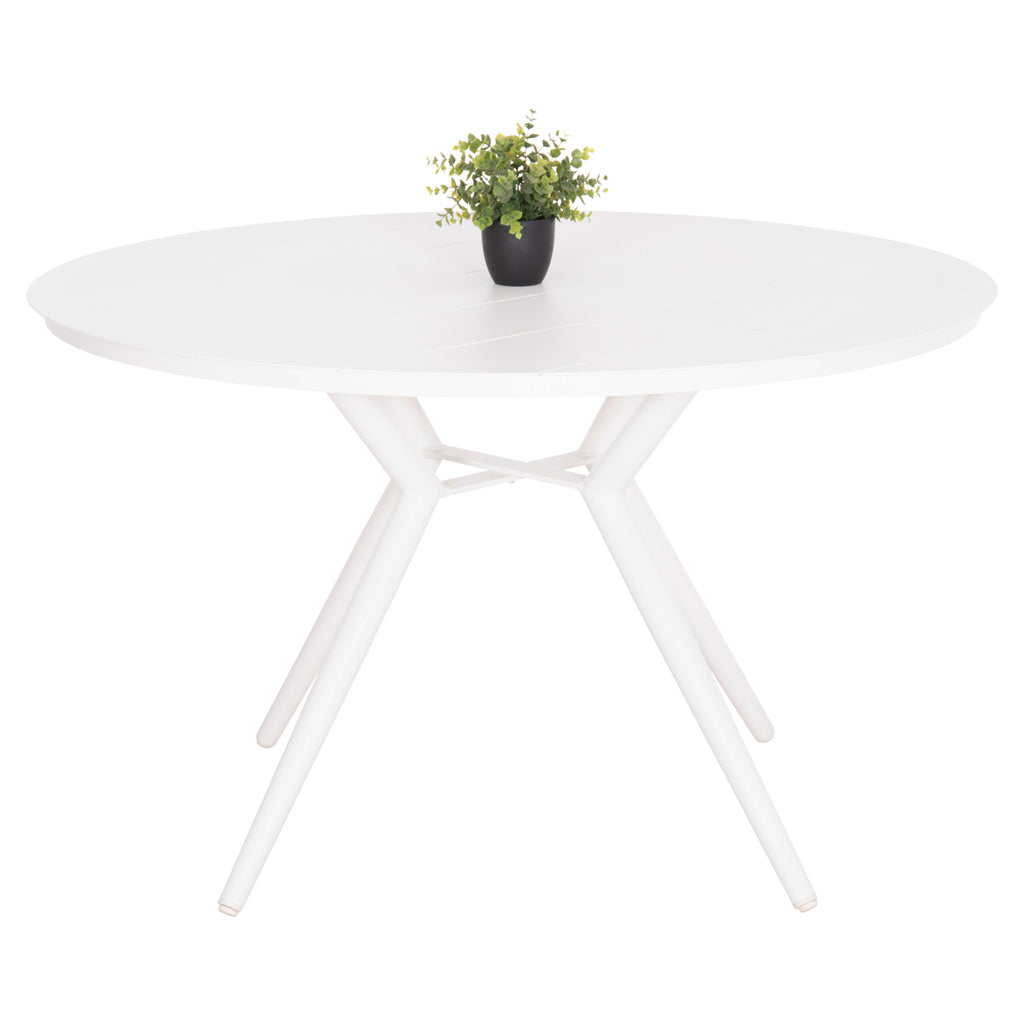 Кръгла маса HIGER е изработена изцяло от алуминий в БЯЛ цвят. Опира се на 4 крака, които се съединяват над и под повърхността. Кръглите маси са особено практични и красиви, защото нямат плотове и "водачи", нито ъгли или крака в ъглите, които много пъти създават неудобни ситуации. Наистина ще обикнете HIGER! Комбинирайте го със столове със същата естетика и преобразете вашето външно пространство. РАЗМЕРИ: Φ126x74Y см. Разстояние между краката: 78-68x78-68 см. МАТЕРИАЛИ НА КОНСТРУКЦИЯТА: Масата е изработена от алуминий. Алуминият е „зелен“ материал, който може да се рециклира неограничено време, като запазва характеристиките си без влошаване на качеството. По своята същност е устойчив на корозия. ПОДДРЪЖКА: Не е необходима специална поддръжка, благодарение на издръжливостта на алуминия. В идеалния случай използвайте много мека кърпа или гъба, обилно количество вода и мек почистващ продукт, като препарат за миене на съдове. Не изисква специална поддръжка, тъй като не корозира. Сапунът и водата са достатъчни, за да го поддържате чист и блестящ. *Продуктът се доставя несглобен **Точното цветопредаване на продукта може леко да се различава от действителния продукт поради различните настройки на всеки монитор.