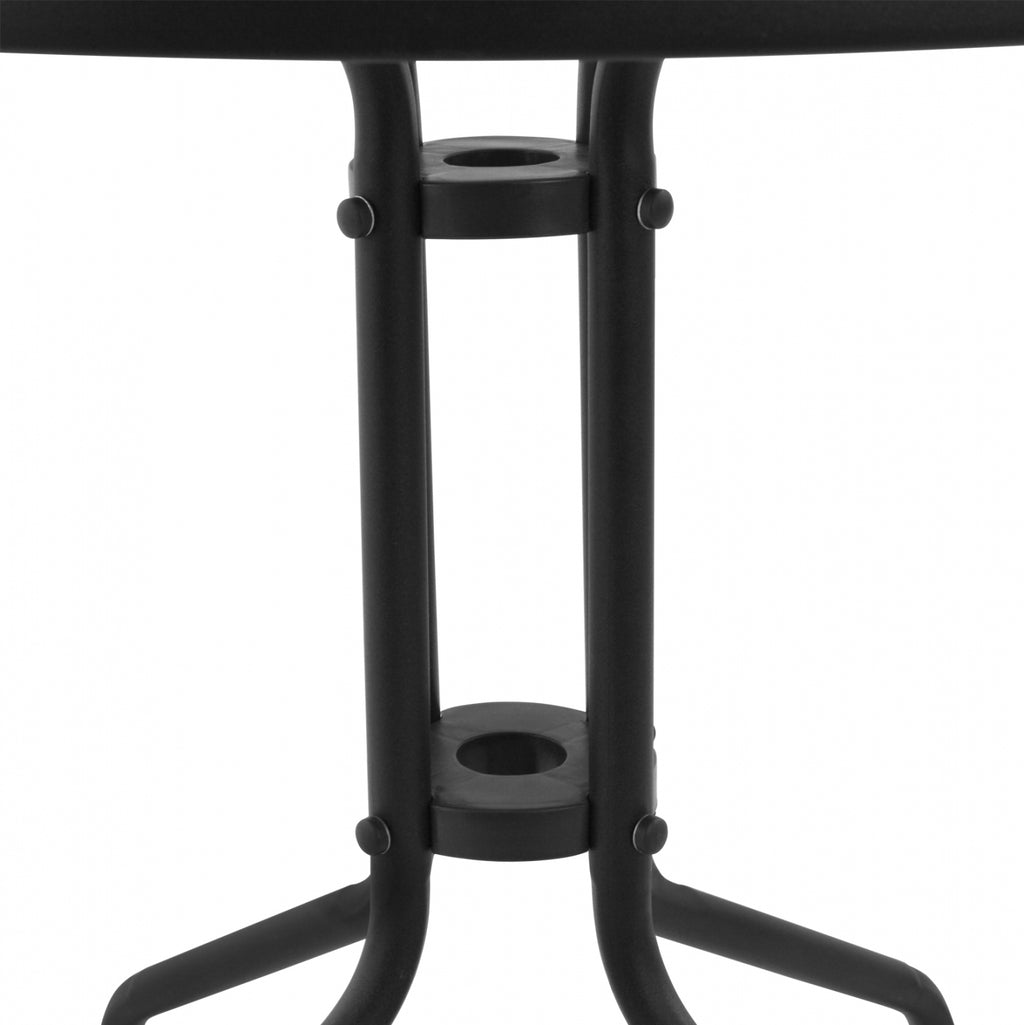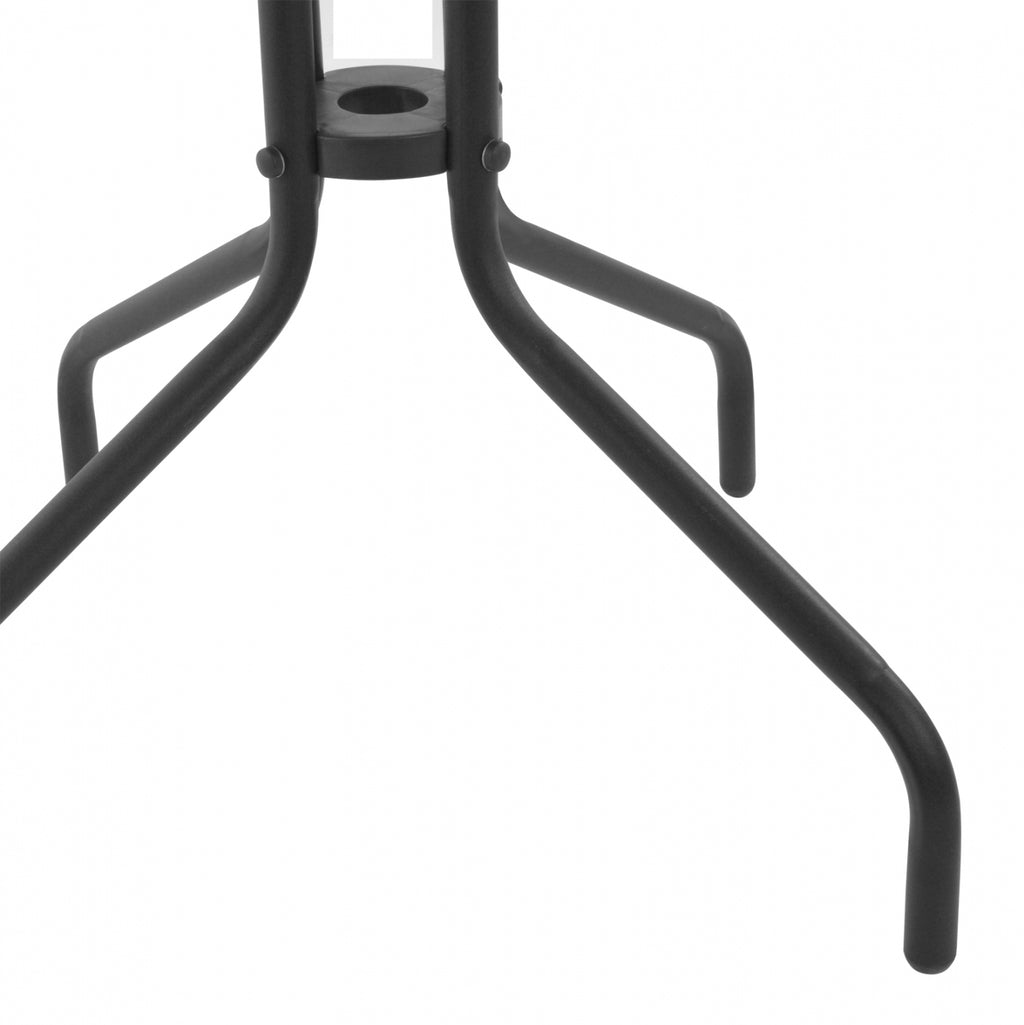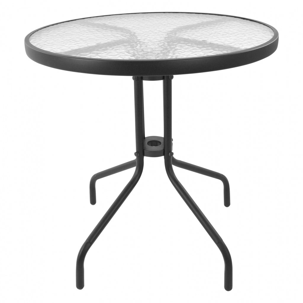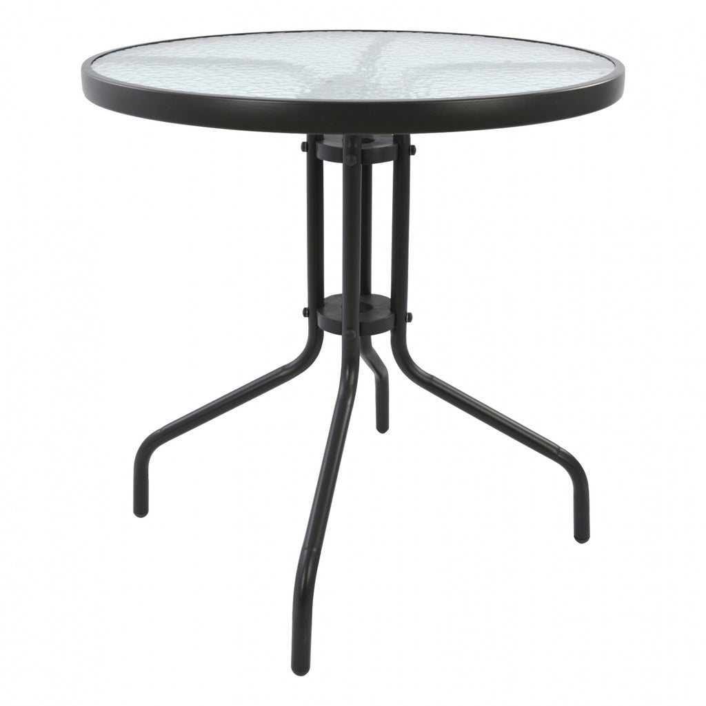 Външна маса от сив метал с безопасно стъкло на повърхността. Размери: Φ70x70H. Цвят на метала: Сив Стъклото е с водни вълнички. Продуктът се предлага в разглобена опаковка. В опаковката има инструкции за сглобяване.