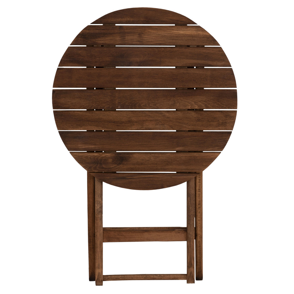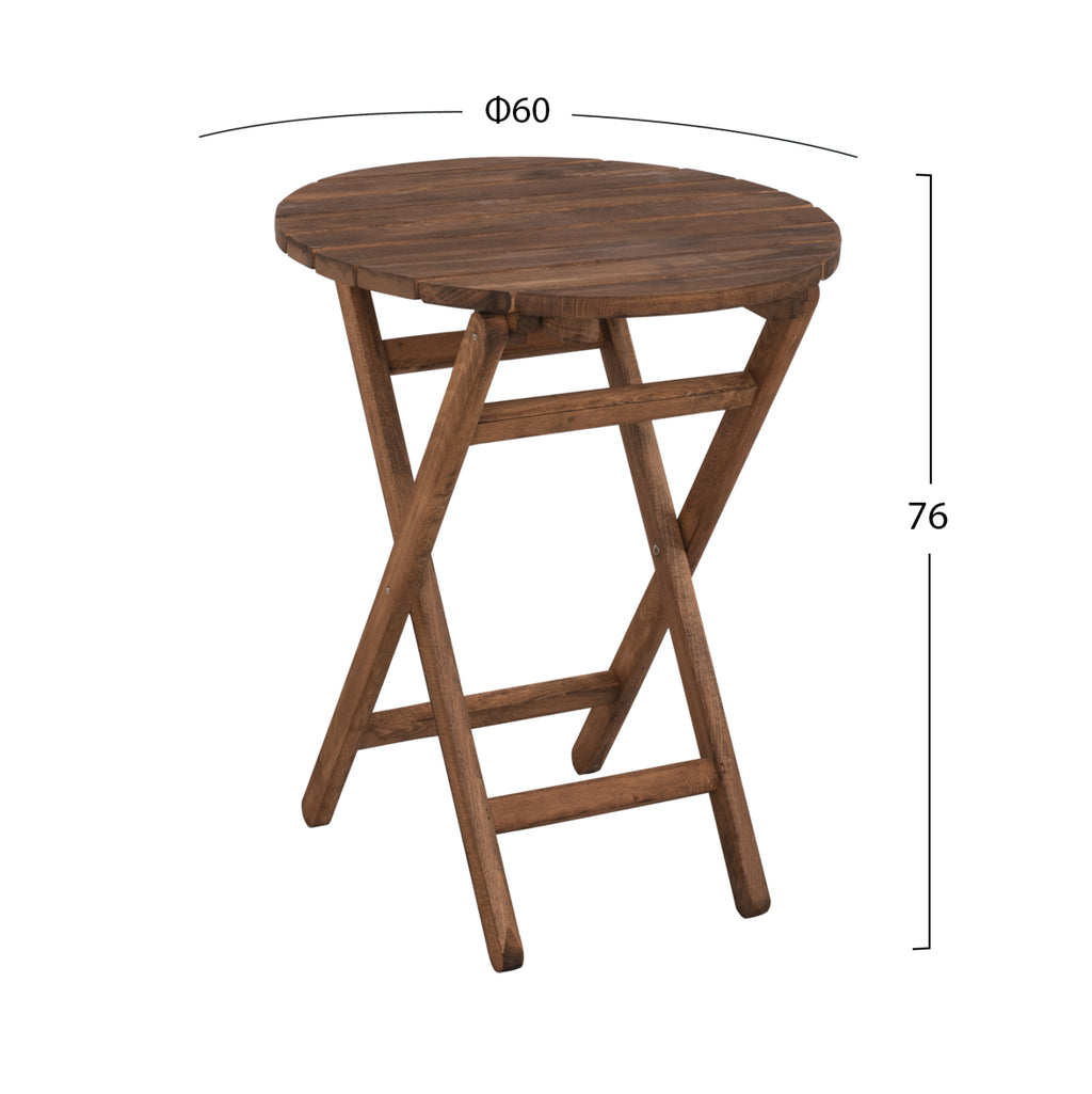 Сгъваема маса дървена импрегнация в нюанс орех. Изработена от подсилена рамка от 100% масивна букова дървесина. Цвят: Орех Размери: Φ60x76H см. Затворен: 60x92H см. Разстояние между краката: 48х41,5 см. Подходящ за бизнес помещение. Забележки Забележка: Продуктът е изработен от естествена масивна букова дървесина. Съществуващите пукнатини или тези, които могат да се образуват с времето, са част от естествената форма на материала и придават оригиналност и уникален дизайн на вашето пространство. По време на производствения процес съществуващите пукнатини се изглаждат и стабилизират с материал от същата дървесина. Поради това може да има цветови вариации и разлики в размерите на продукта поради размерите на обработената дървесина. Това не са дефект на продукта.
