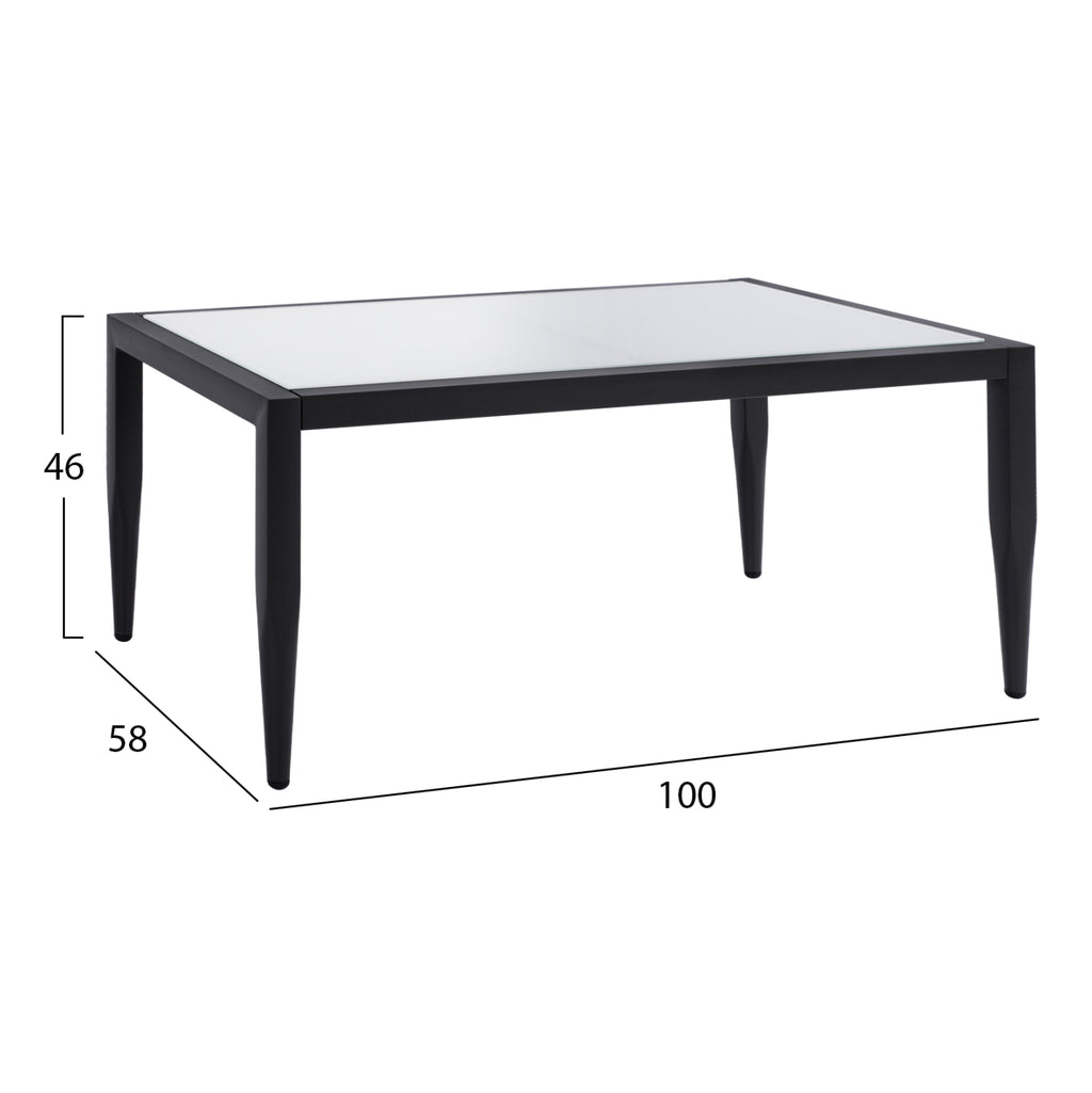Професионална ниска холна маса за хол от алуминий, в сив нюанс със стъкло на повърхността. Изработена е от алуминий и това я прави подходяща както за вътрешна, така и за външна употреба. Размери: 100x58x46H см.