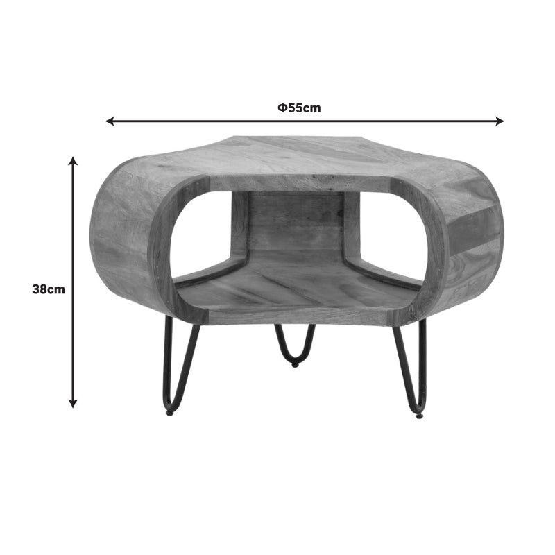 - Повърхността е изработена от висококачествено масивно дърво Sheesham, известно със своята издръжливост и дълготрайност - в естествения си цвят. Всяко парче е произведение на изкуството, тъй като е уникално поради специалната нееднородност на ствола на дървото. Може да има или да се образуват пукнатини с течение на времето (поради свиването и разширяването на масивната дървесина, която е жив организъм), което я прави още по-оригинална и специална. По време на производствения процес съществуващите пукнатини се третират и хомогенизират с материал от същата дървесина. Следователно всяко парче може да има леки вариации в цветовия тон и размерите поради естествеността на ствола на дървото. Всички изброени по-горе са напълно естествени за масивна дървесина и не представляват дефект на продукта