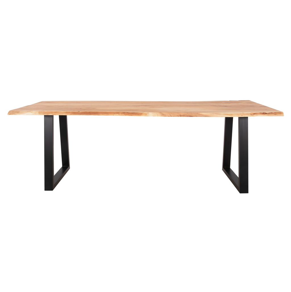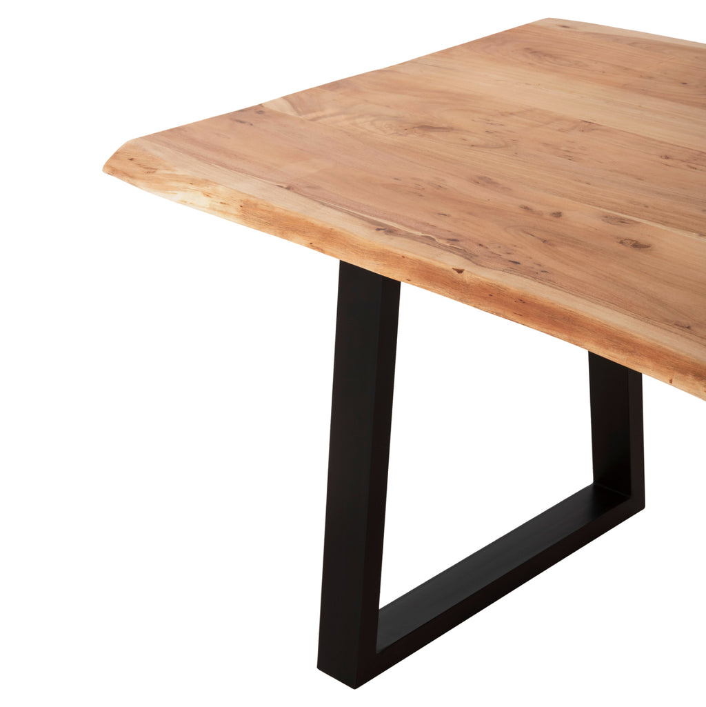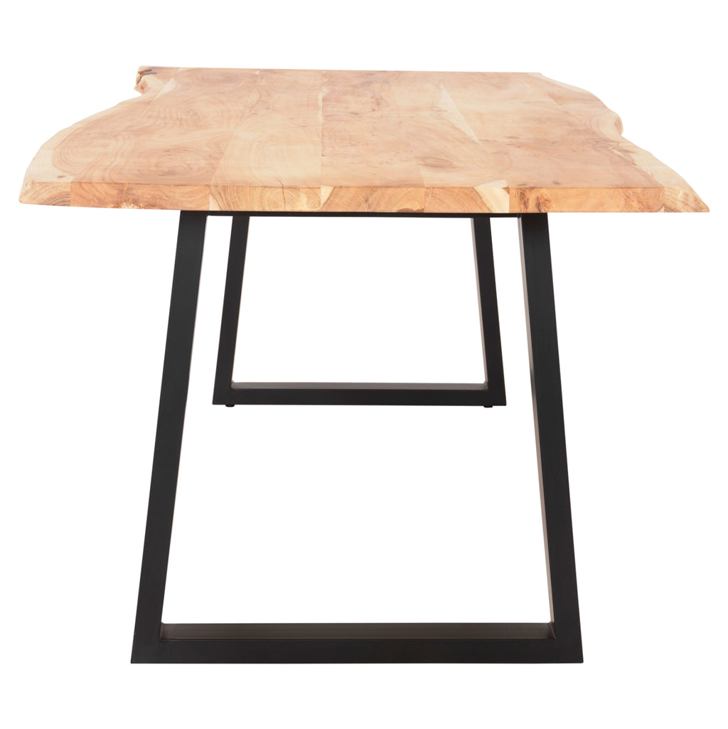 Открийте уникалната голяма ръчно изработена маса MONTANA с повърхност от естествено масивно дърво AKAKIAS в цвят ANOIXTO NATURAL. Формата на повърхността с дебелина 3,5 см е НЕПРАВИЛЕН правоъгълник и лежи върху две черни метални основи с трапецовидна форма. Модерният дизайн се среща с природата и придава вечно и топло усещане на вашето пространство. Комбинирайте го с дървена пейка или столове със същата естетика и получете трапезарията, която винаги сте искали. РАЗМЕРИ: Размери: 240x101x78Y см. Дебелина на повърхността: 3,5см. Разстояние между краката: 191-175x70 см. МАТЕРИАЛИ НА КОНСТРУКЦИЯТА: Основите-крака са изработени от подсилен метал, за да могат да издържат тежестта на 3,5 см масивна дървена повърхност. Продуктът е изработен от естествено масивно дърво AKAKIAS и всеки един е уникален поради неравностите на стволовете. Когато говорим за масивно дърво, имаме предвид дървета, направени изцяло от ствола на дърво. Масивната дървесина е най-скъпият избор по отношение на дървесината, но се откроява със своята вечна естетика. **Съществуващите пукнатини или такива, които могат да се образуват с течение на времето се дължат на свиването-разширяването на живия организъм, наречен масивна дървесина, а не са производствен дефект, придавайки оригиналност и уникален дизайн на вашето пространство. По време на производствения процес съществуващите пукнатини се изглаждат и стабилизират с материал от същата дървесина. СЛЕДОВАТЕЛНО МОЖЕ ДА ИМА ЦВЕТОВИ ВАРИАЦИИ И РАЗЛИКИ В РАЗМЕРИТЕ НА ПРОДУКТА. Това не са дефект на продукта. ПОДДРЪЖКА: Масивната дървесина от всякакъв вид се счита за висококачествена. В случай на износване може да бъде ремонтиран и да издържи много години. За да почистим дървото от прах и атмосферни влияния, се нуждаем от материал, който е активен, но и достатъчно мек, за да не нарани дървото, винаги следвайки водата на дървото. *Продуктът се доставя несглобен ** Цветопредаването на продукта може леко да се различава от фотографското представяне на вашия екран.