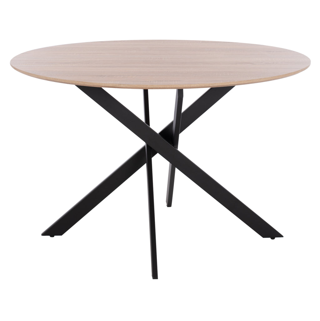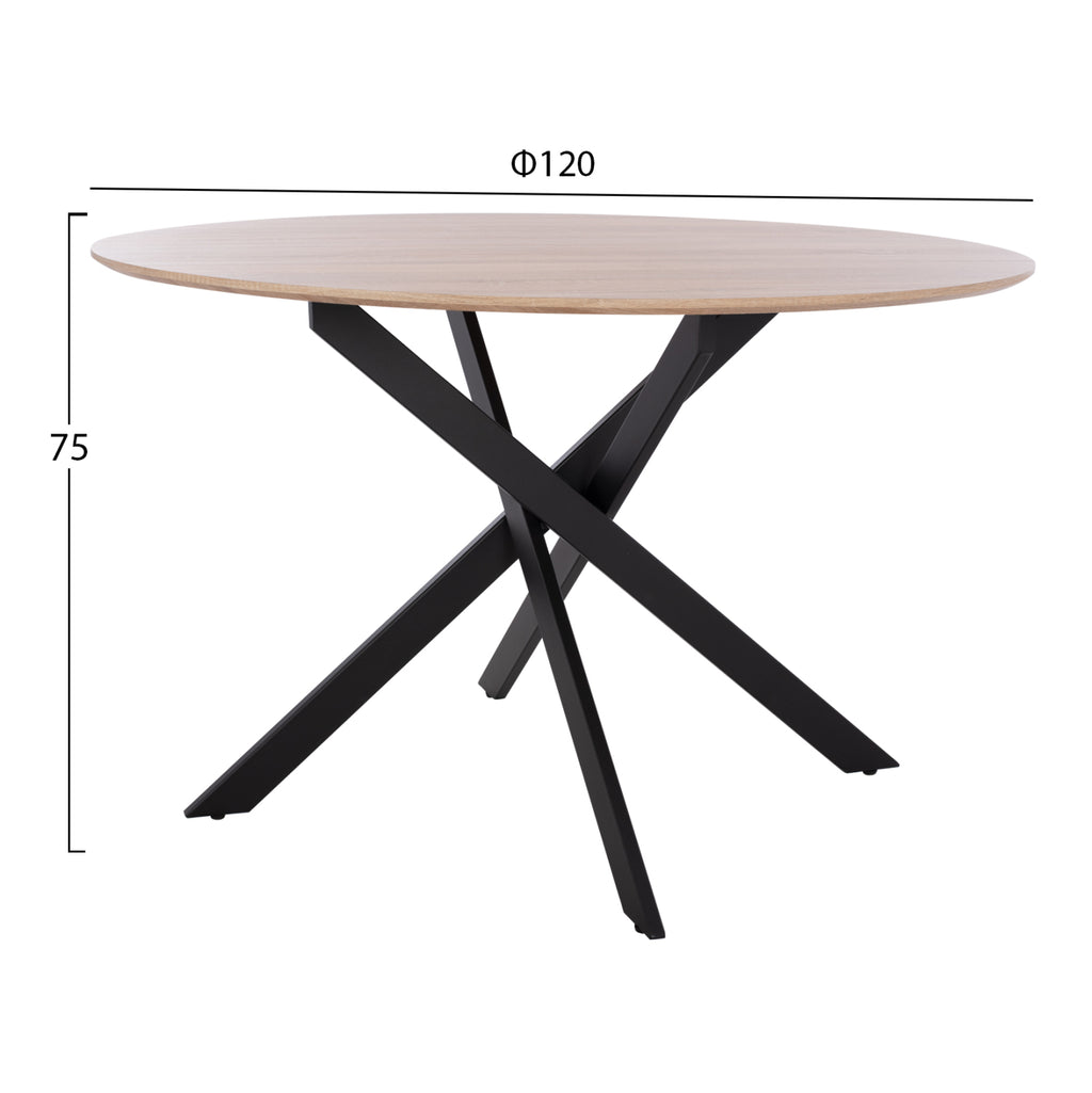 Трапезна маса Rosario, в нюанс sonama и черни крака Φ120X75 см. Има оригинален дизайн, благодарение на формата на краката. Уникална и оригинална маса за вашата кухня или трапезария, която ще обнови вашето пространство. Стабилна рамка от висококачествен метал с устойчивост на износване и време. Конструкцията се опира на четири крака, които създават специален дизайн за основата на масата. MDF повърхност с изключителна издръжливост. Размери: Φ120х75 см. Продуктът се предлага разглобен в опаковка.