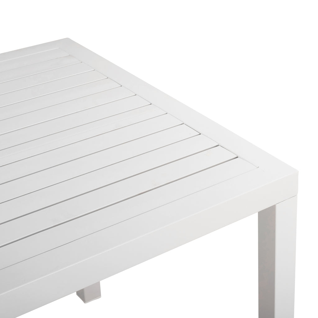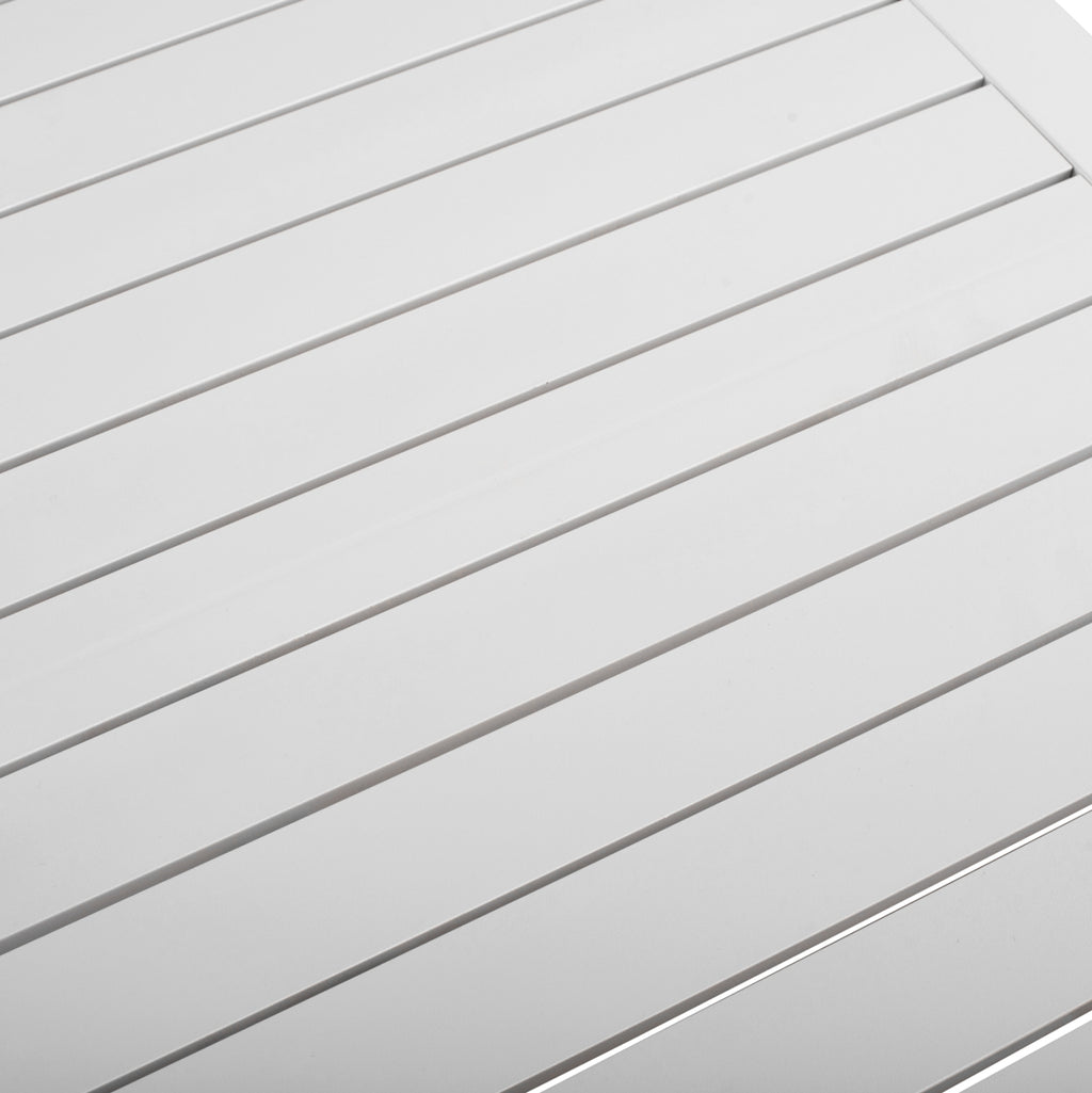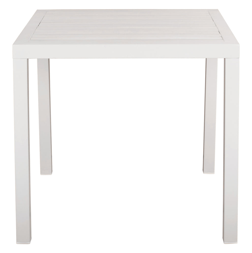 Професионална алуминиева маса с 4 крака в бял цвят. Изработена е от алуминий и това я прави подходяща както за вътрешна, така и за външна употреба. Проектиран така, че да запази минималния дизайн, но и здравата му конструкция. Размери: 80х80х75см.