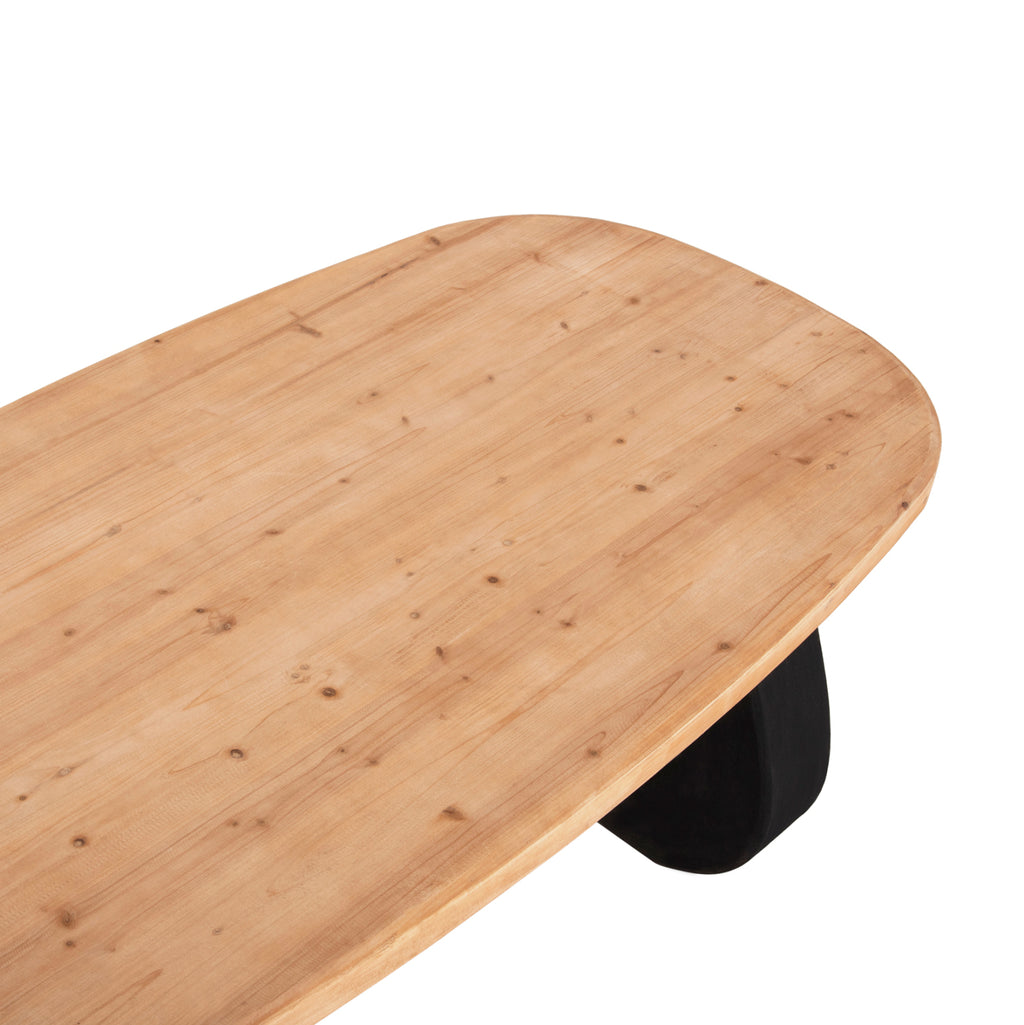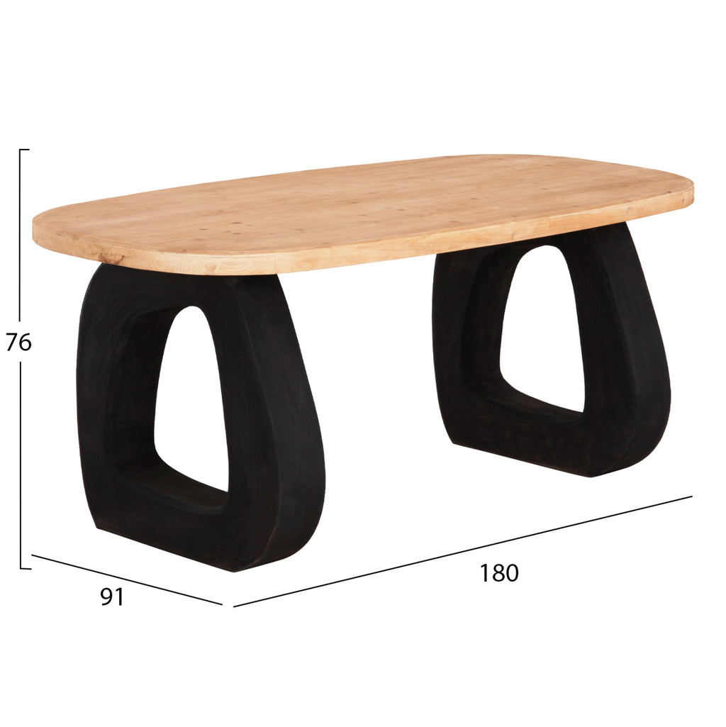 Тази ръчно изработена маса е единствената в нашата гама, която комбинира два напълно различни материала в перфектна хармония. Повърхността е с овална форма и е изработена от елхова дървесина в НАТУРАЛЕН цвят, а краката са в стила на основи в ЧЕРЕН цвят от полиуретан с циментова текстура, което е най-модерната тенденция в областта на интериорния дизайн. Подходяща за декорация в стил "остров"! РАЗМЕРИ: 180x91x76Y см. Дебелина на повърхността: 5см. МАТЕРИАЛИ НА КОНСТРУКЦИЯТА: Основите на краката са изработени от полирезин. Polyresin е лек и издръжлив вид пластмаса, особено лесен за "работа" и приемане на различни форми. Плотът е изработен от ела. Елата е вид вечнозелено иглолистно дърво, здраво и издръжливо. ** Съществуващите пукнатини или тези, които могат да се появят с течение на времето, се дължат на свиването-разширяването на живия организъм, наречен масивно дърво, и не са производствен дефект. Поради това може да има цветови вариации и разлики в размерите на продукта поради обработката на дървото. Това не са дефект на продукта. ПОДДРЪЖКА: Масивната дървесина от всякакъв вид се счита за висококачествена. В случай на износване може да бъде ремонтиран и да издържи много години. За да почистим дървото от прах и атмосферни влияния, се нуждаем от материал, който е активен, но и достатъчно мек, за да не нарани дървото, винаги следвайки водата на дървото. Основите се почистват с влажна кърпа. *Продуктът се доставя несглобен ** Цветопредаването на продукта може леко да се различава от фотографското представяне на вашия екран.