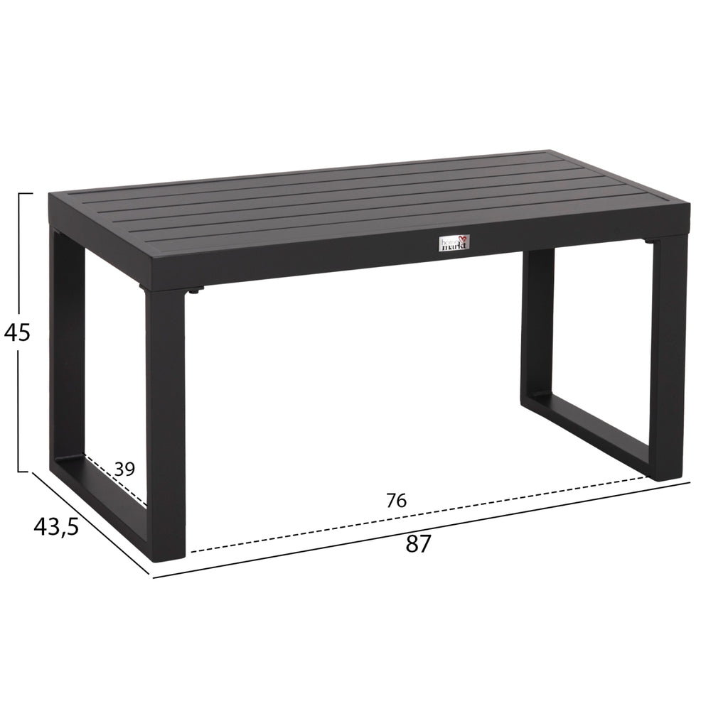 Размерите ѝ – 87x43.5x45H см, с разстояние между краката 76x39 см – я правят удобна и стабилна. Алуминиевата рамка (50x23 мм) и повърхността от алуминиеви плоскости (60x6 мм) са покрити с висококачествено електростатично боядисване, което предпазва от корозия, надраскване и износване. Благодарение на тези характеристики, алуминиевата помощна маса SENTRY е отличен избор за употреба на открито – от морски курорти до домашни тераси.