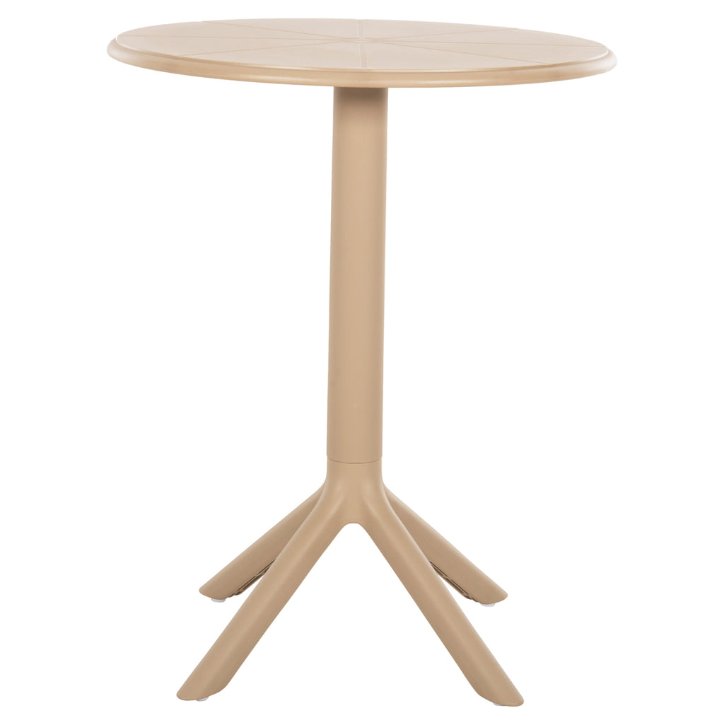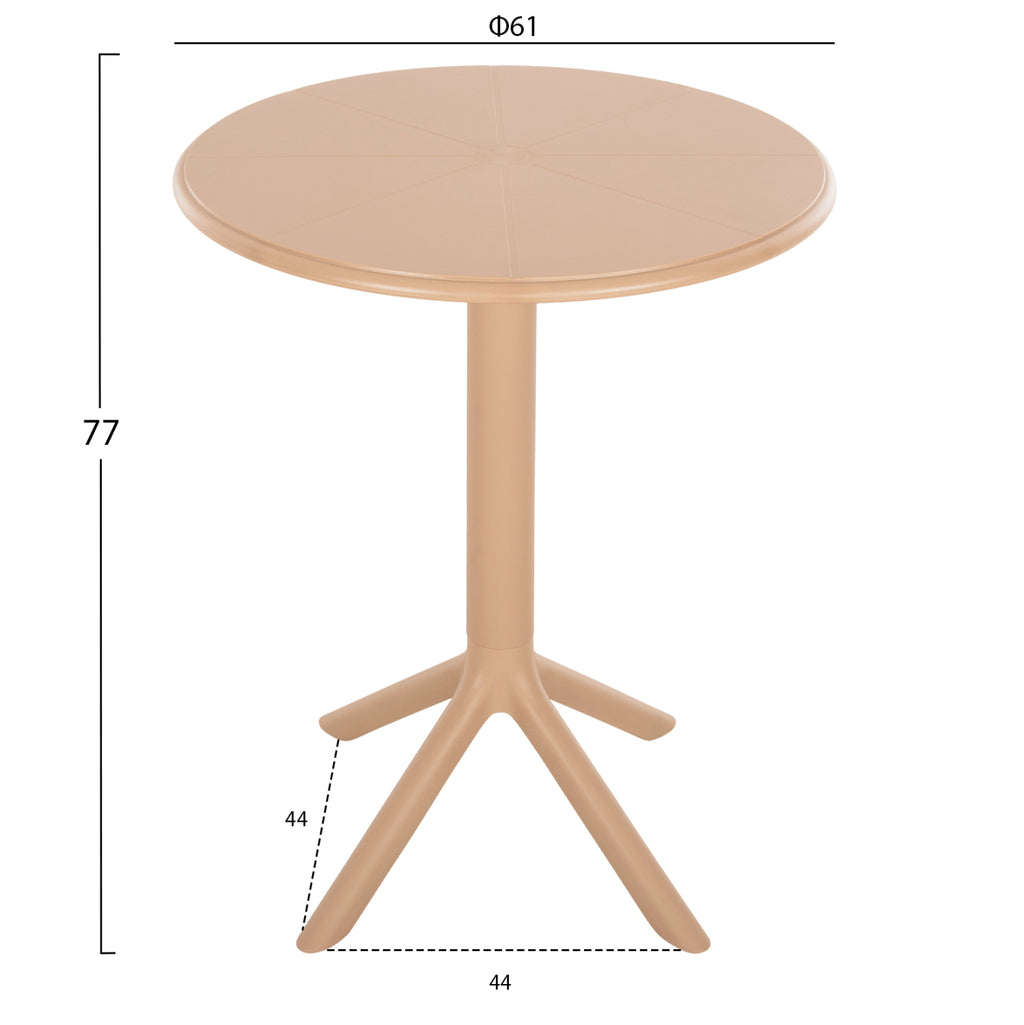 Полипропиленовата маса TERRIN в цвят CAPPUCCINO е идеалното предложение за използване във външни пространства, както професионални (банкетни зали, кетъринг фирми и др.), така и за дома. Масата е кръгла, като в центъра се поддържа от колона, която завършва с 4 крака ("нокти").